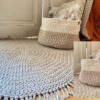 سجادة كروشيه ناعمة بقطر ٩٠ سم، ومعاها بوكس بنفس الخامة واللون، شكلهم يفتح النفس 🤍