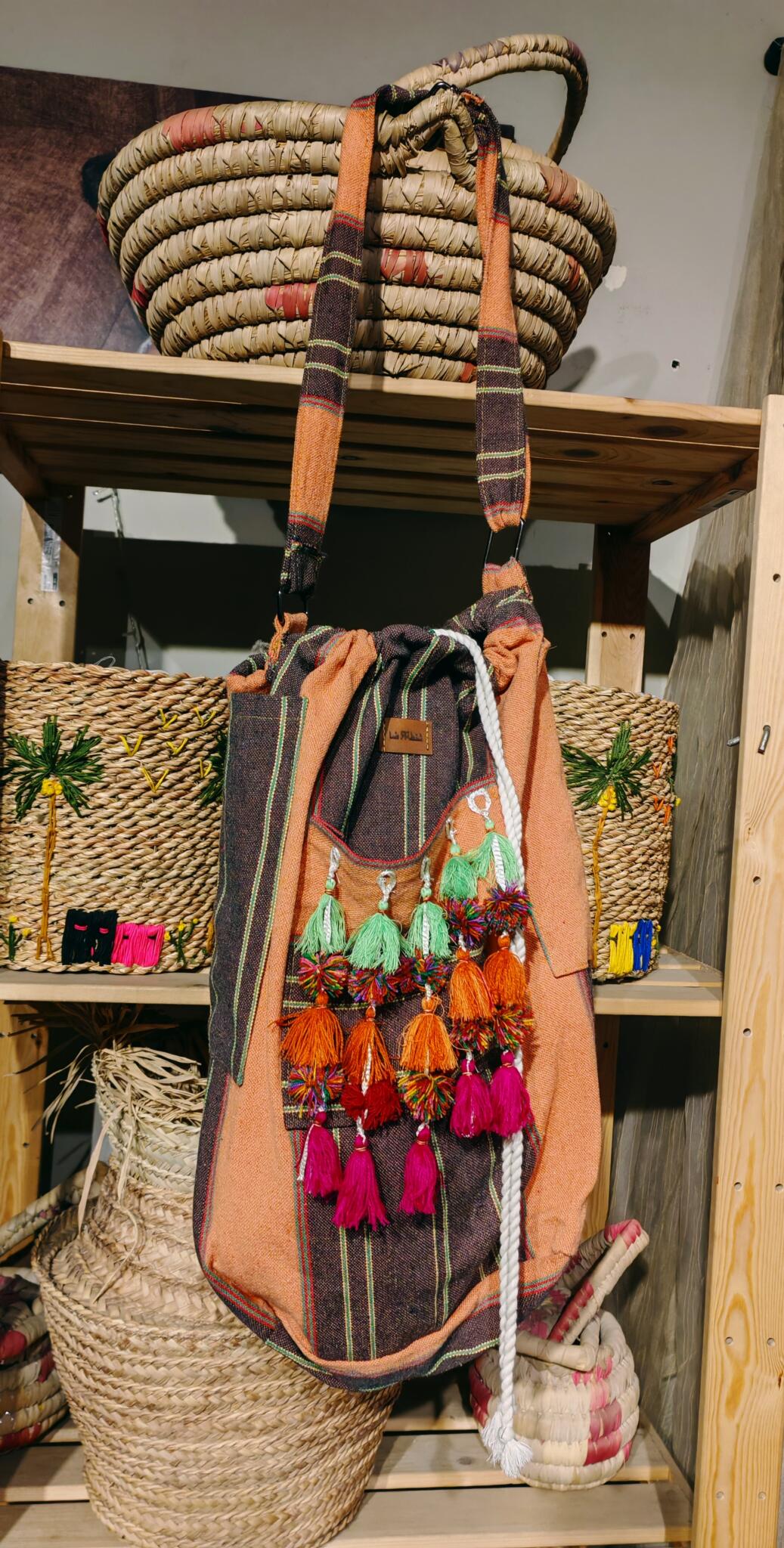 حقيبة متحملة سيناوي بدوي لون اورانج مع بني بجيوب جانبيك و رباط شداد لاحكام الغلق