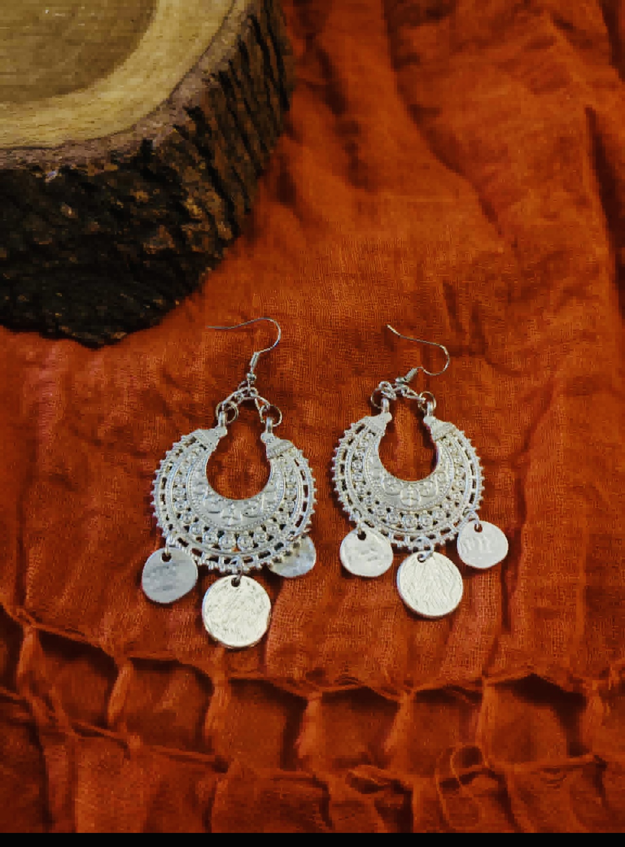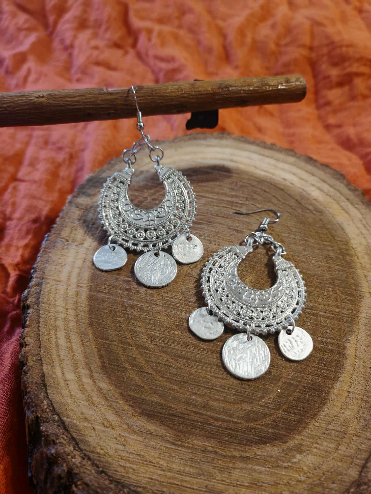 الإضافات: تتدلى منه ثلاث قطع معدنية دائرية صغيرة تشبه العملات المعدنية.