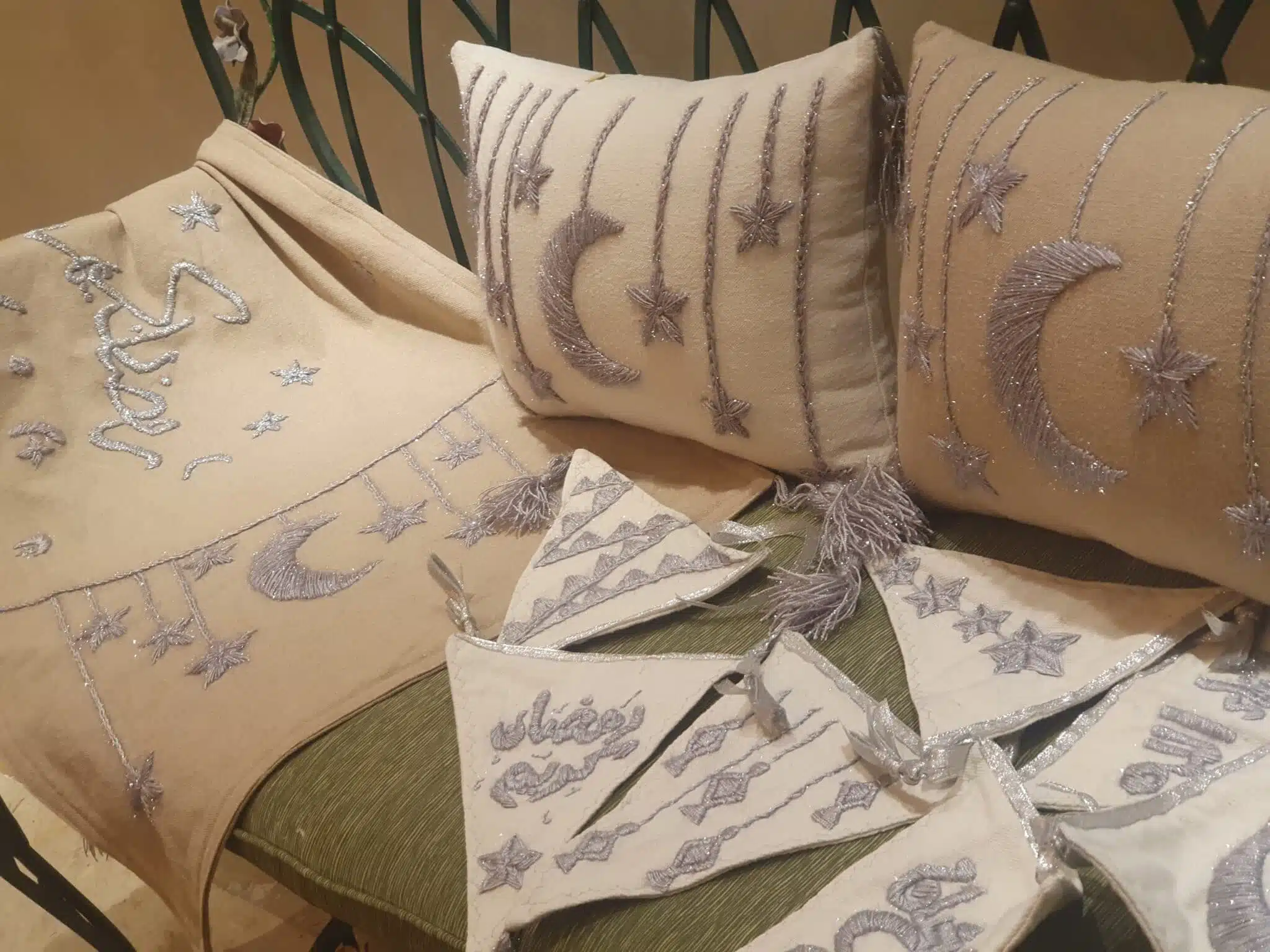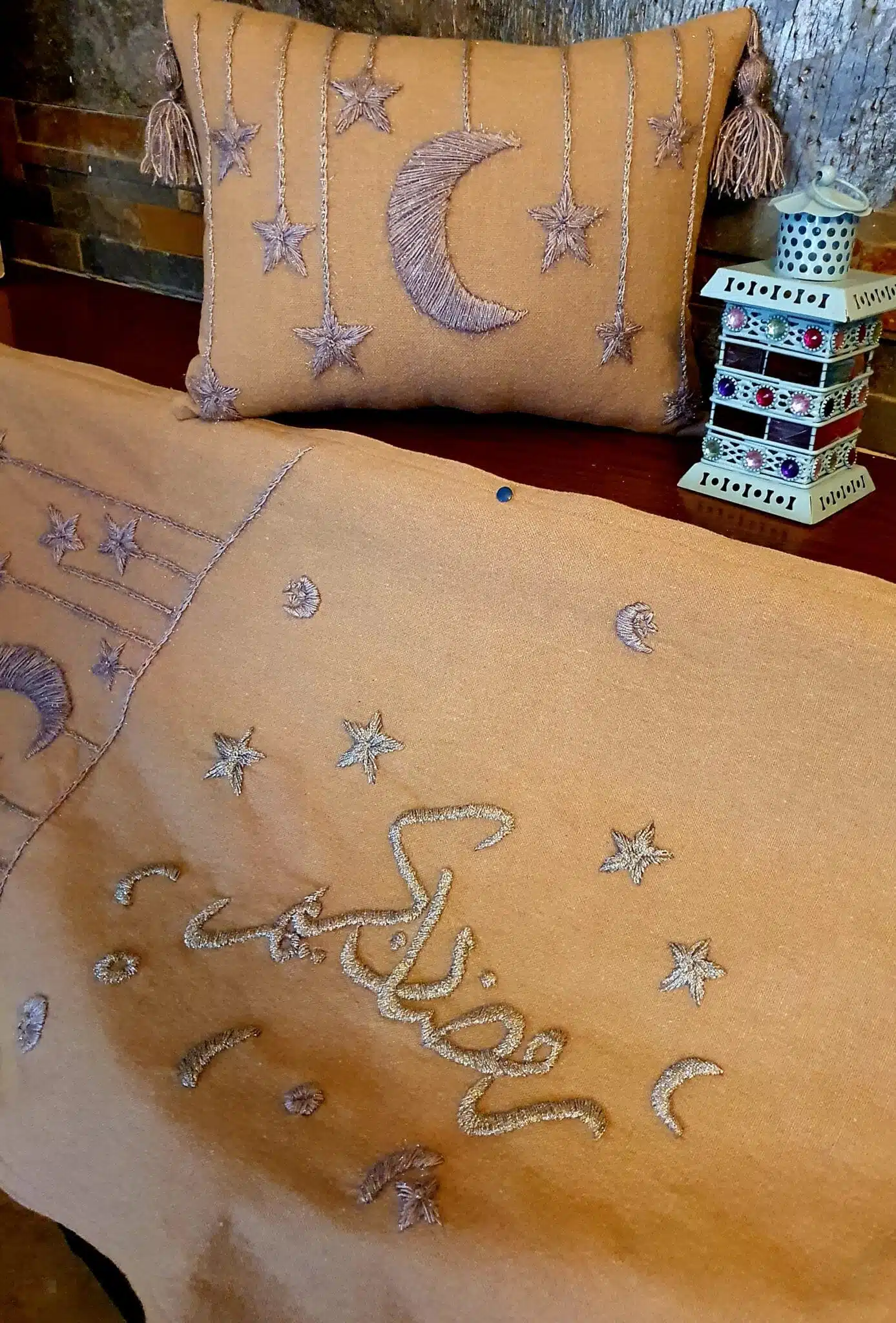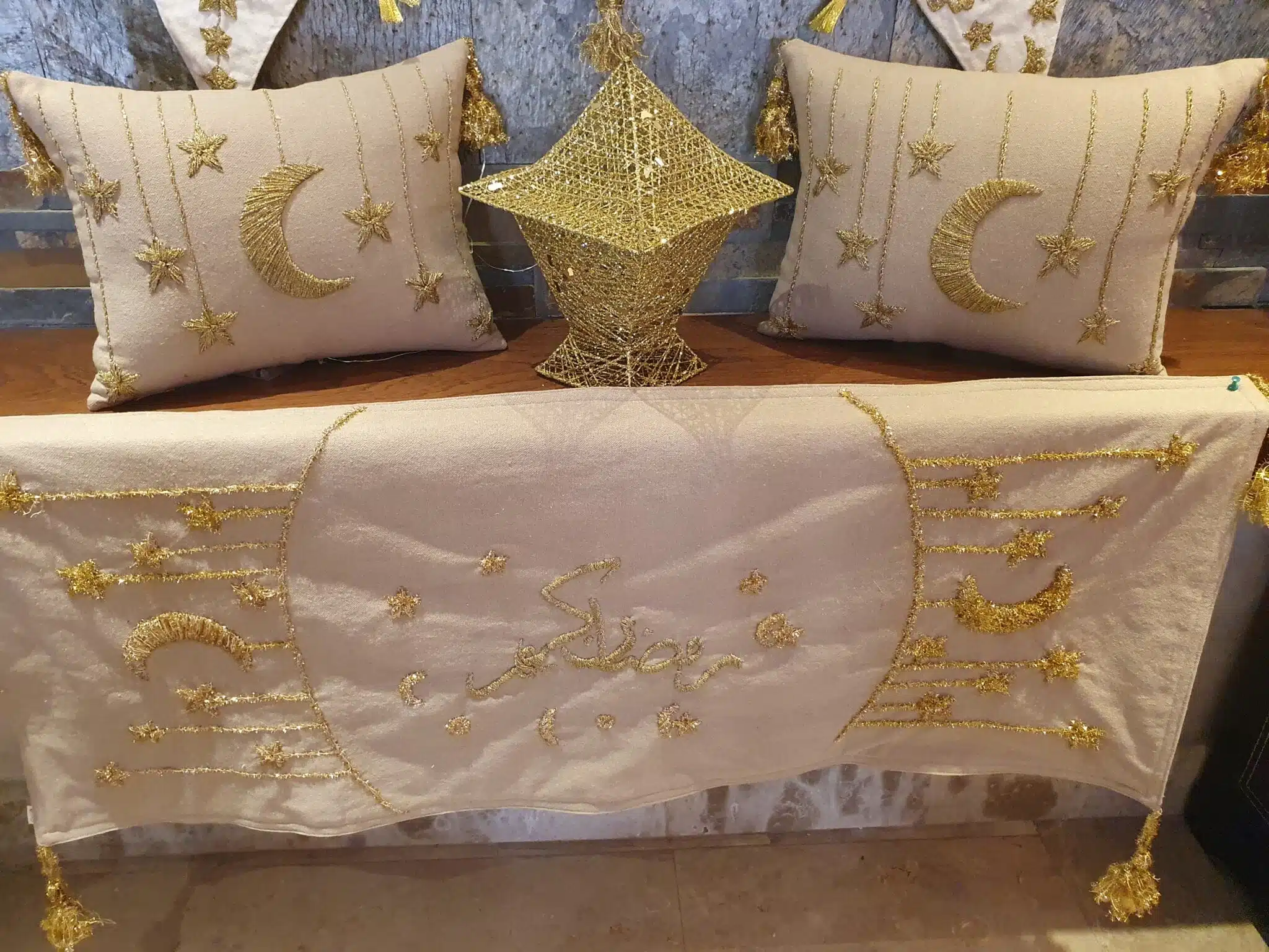 Handmade embroidery runner 120×50 cm .beig color fabric and embroidery (gold or