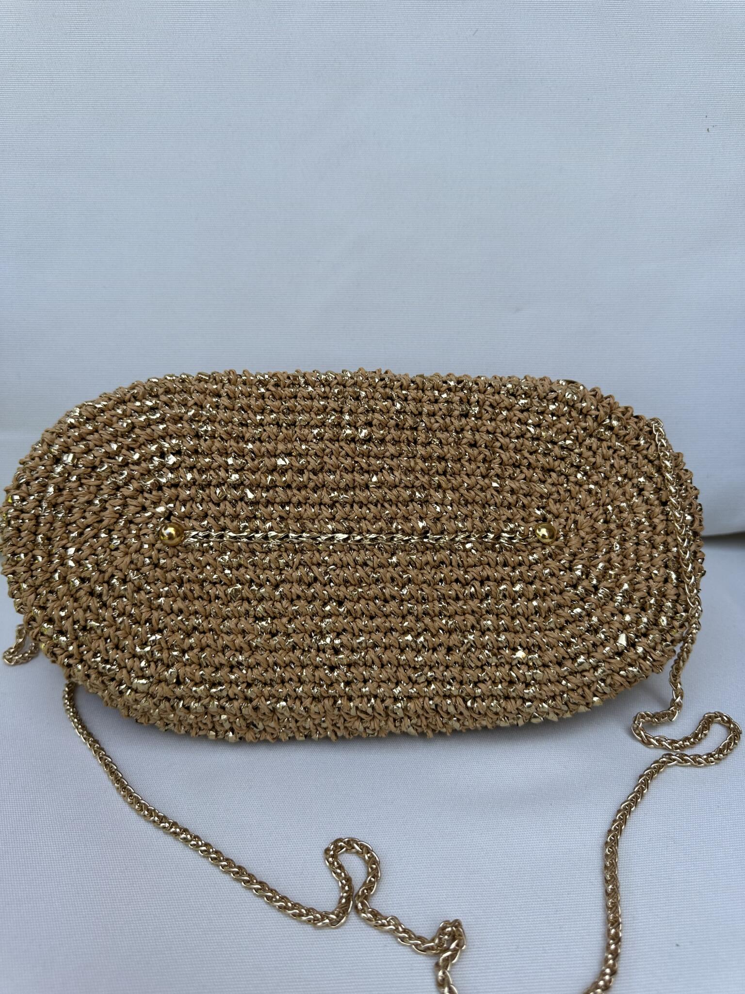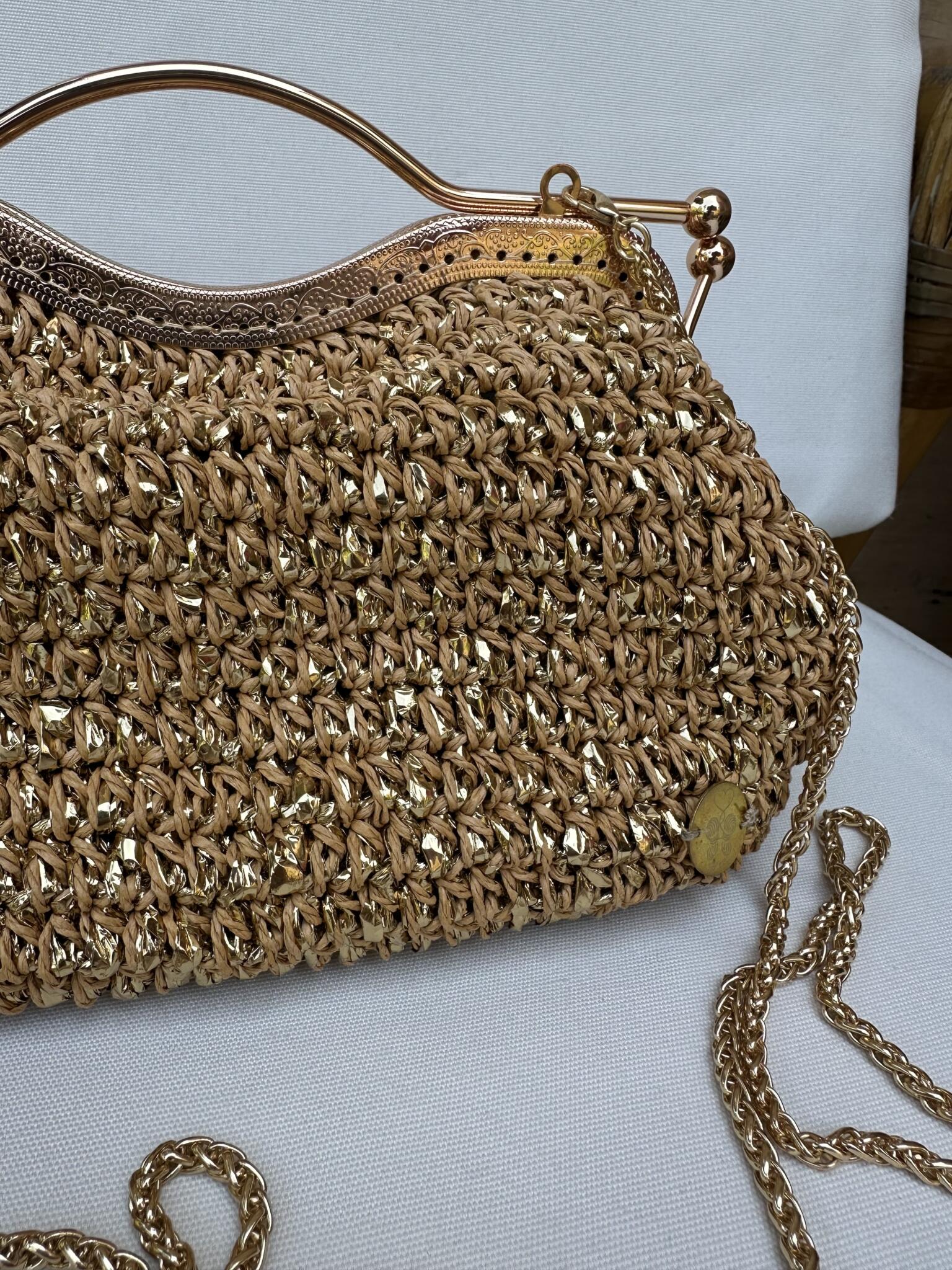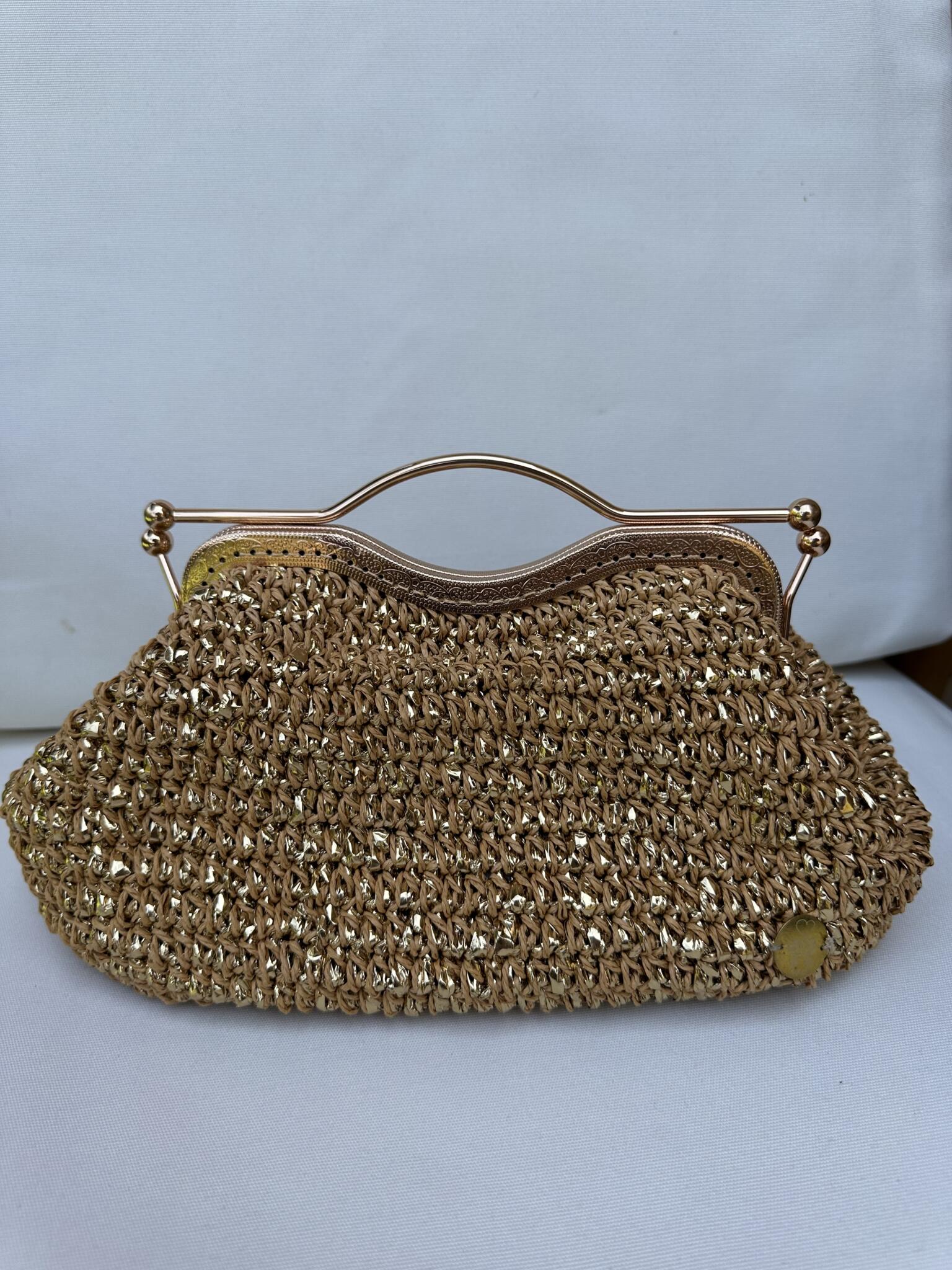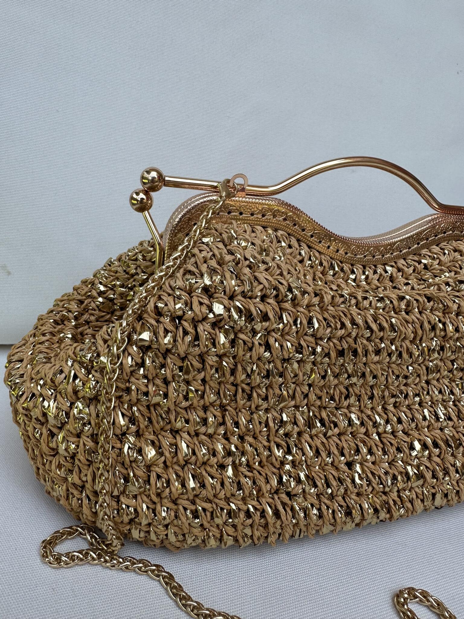 Beige and gold Horus bag made from raffia threads with Horus handle