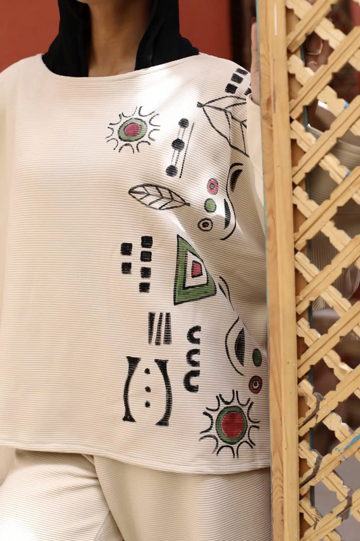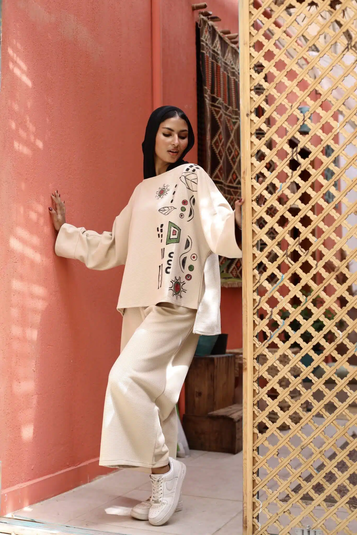 Beige fleece set for winter, comfortable and fashionable, hand draw