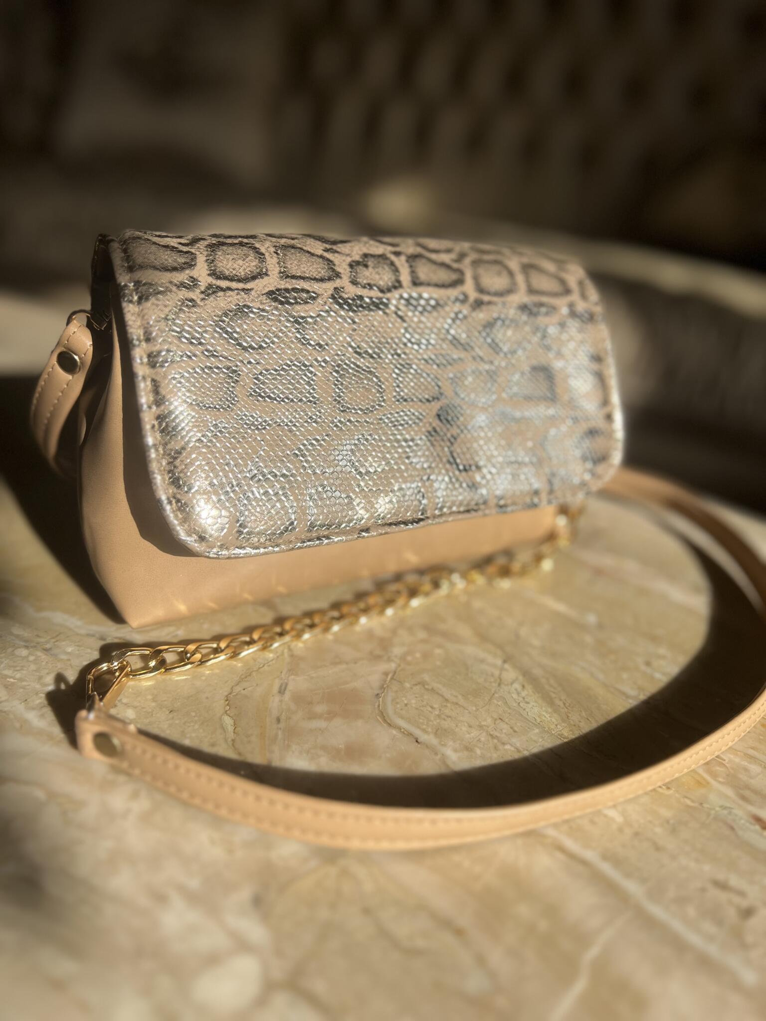 Beige x Gold Python Mini Crossbody: