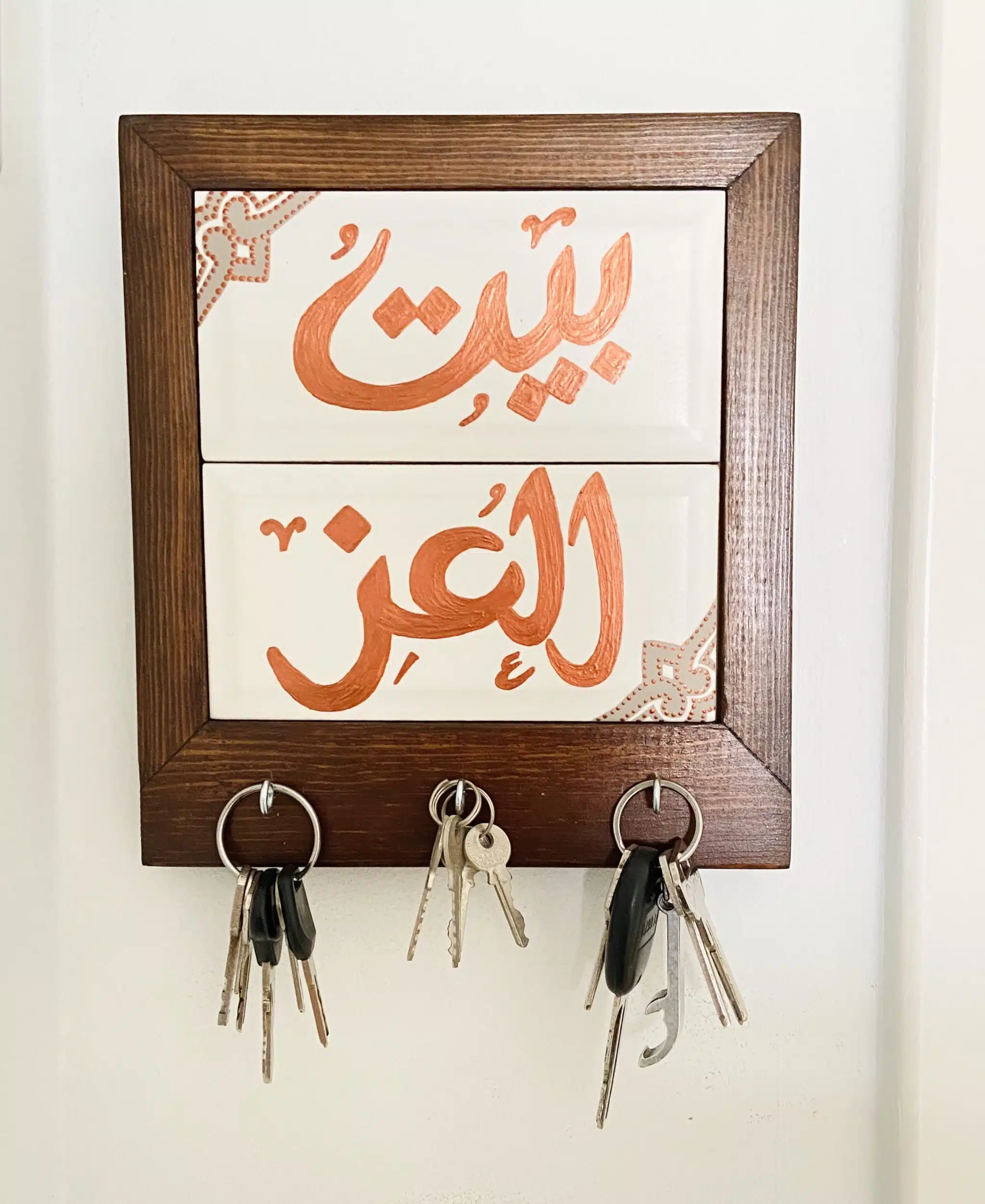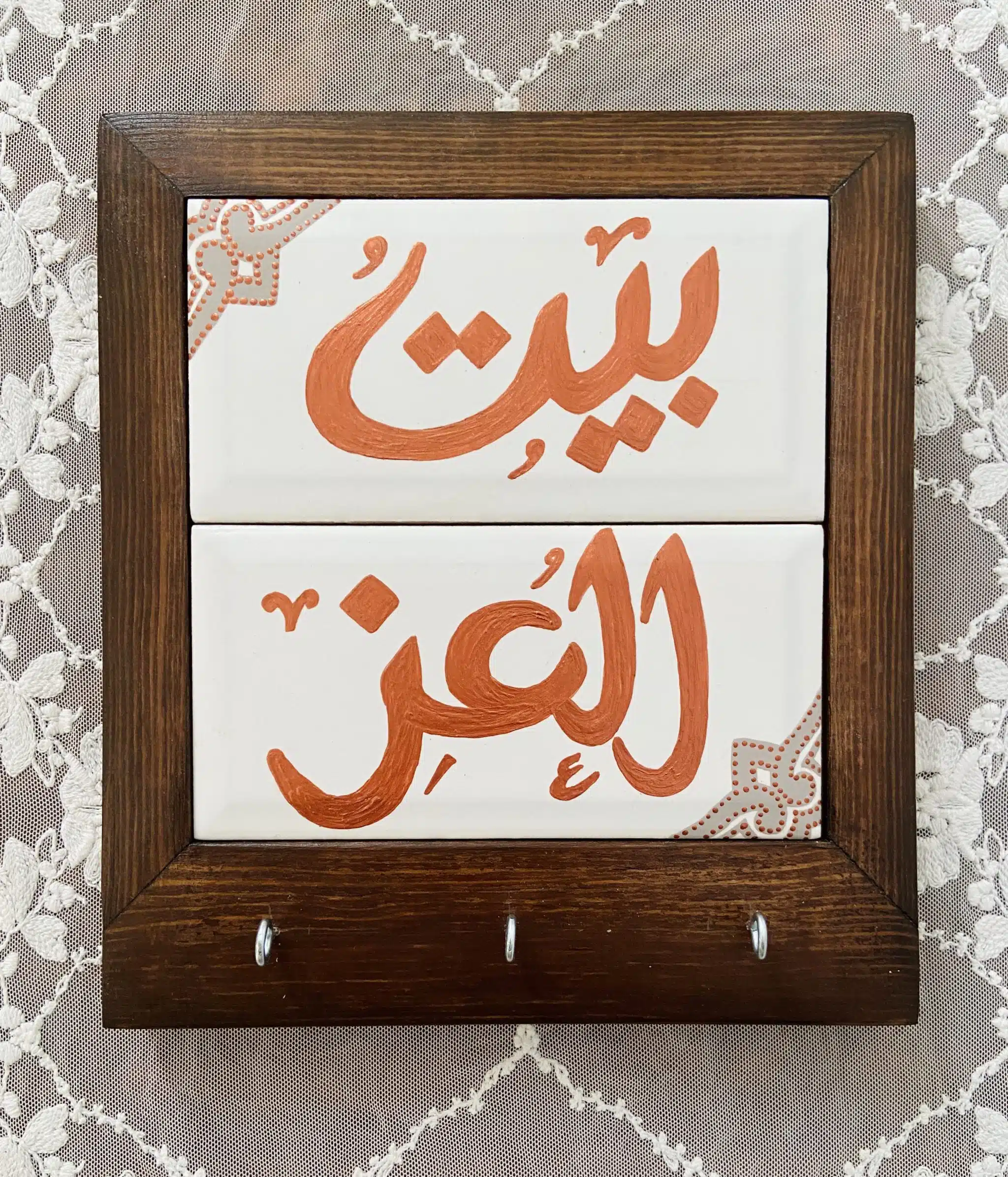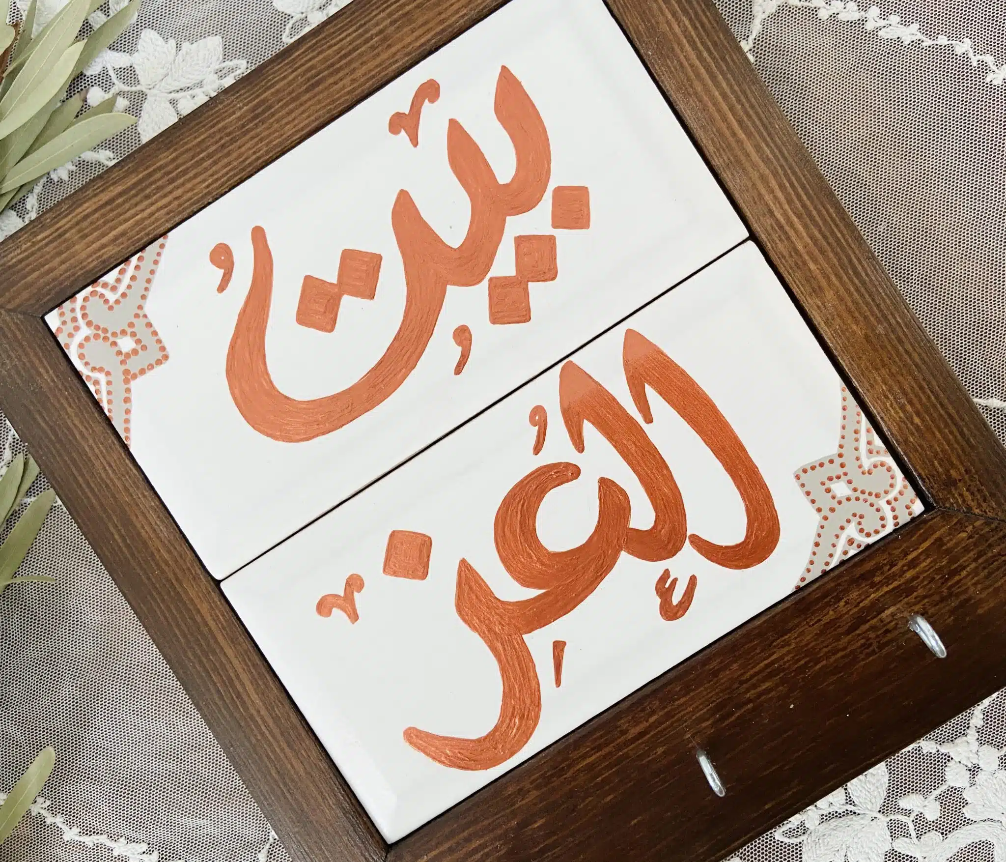 two handpainted tiles, customized, total size of the frame 25×25 cm