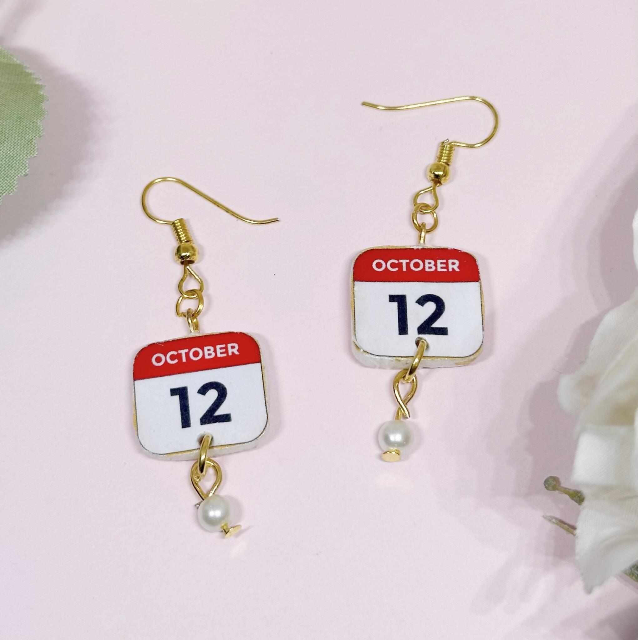 Unique calender earrings featuring your special date, a fun and personal way to celebrate your birthday every day, perfevt as a custom gift for yourself or someone you love.