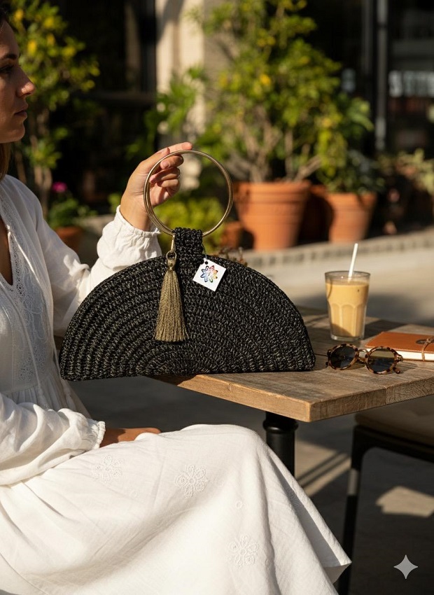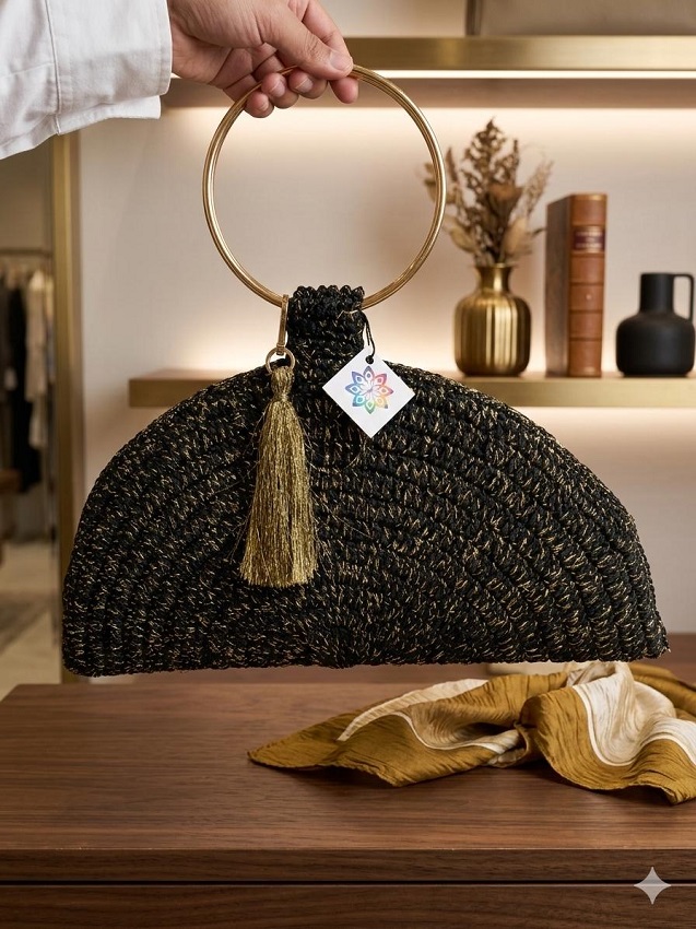 شنطة متوسطة الحجم صنعت من الاسود و الذهبي ثنائي الفخامة التي لا تنتهي