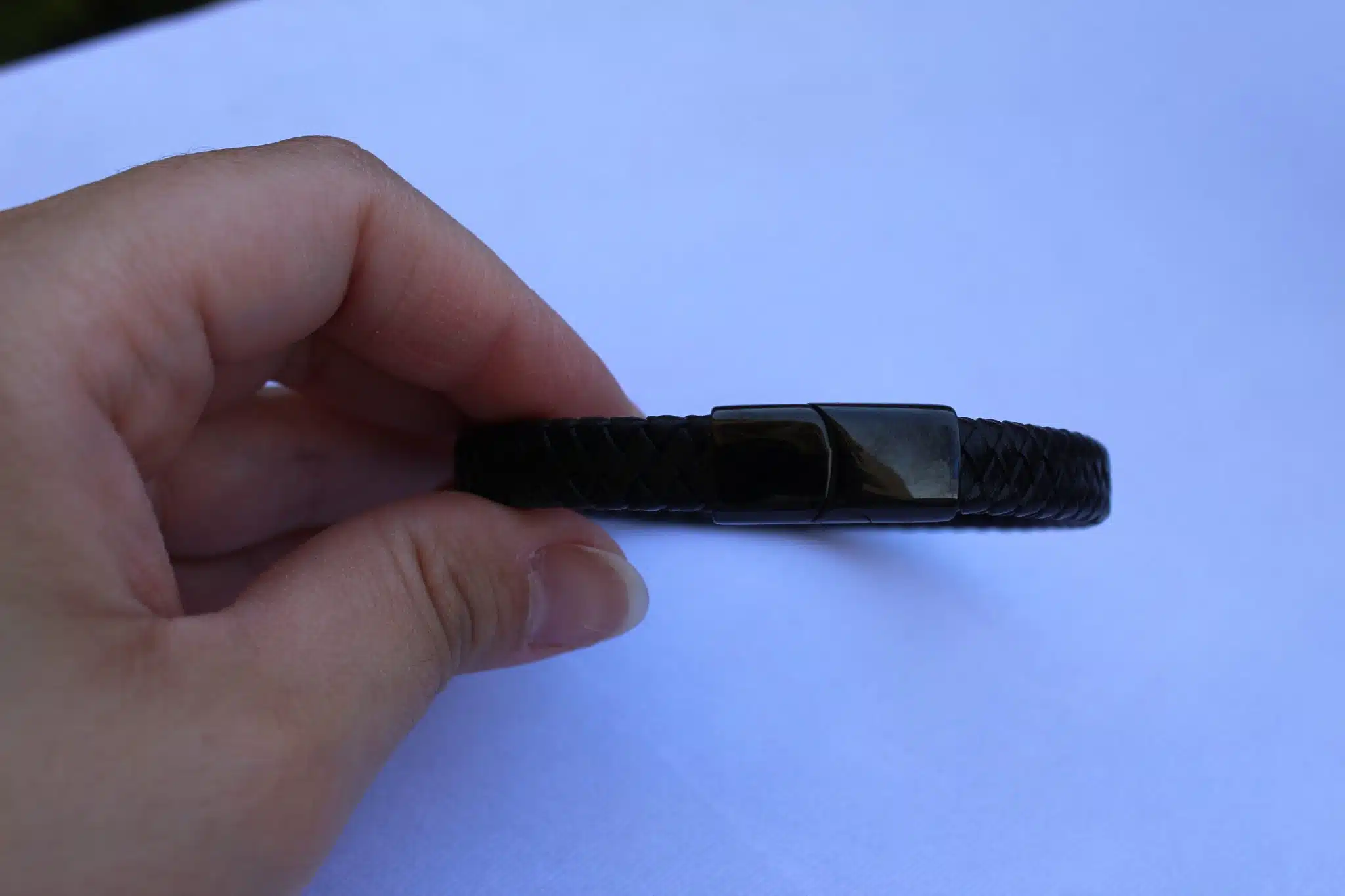Black high-quality leather mixed with black stainless style lock