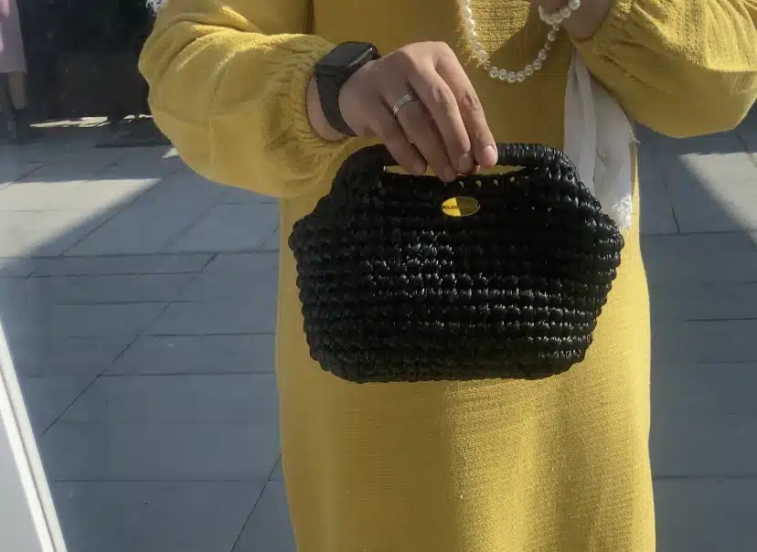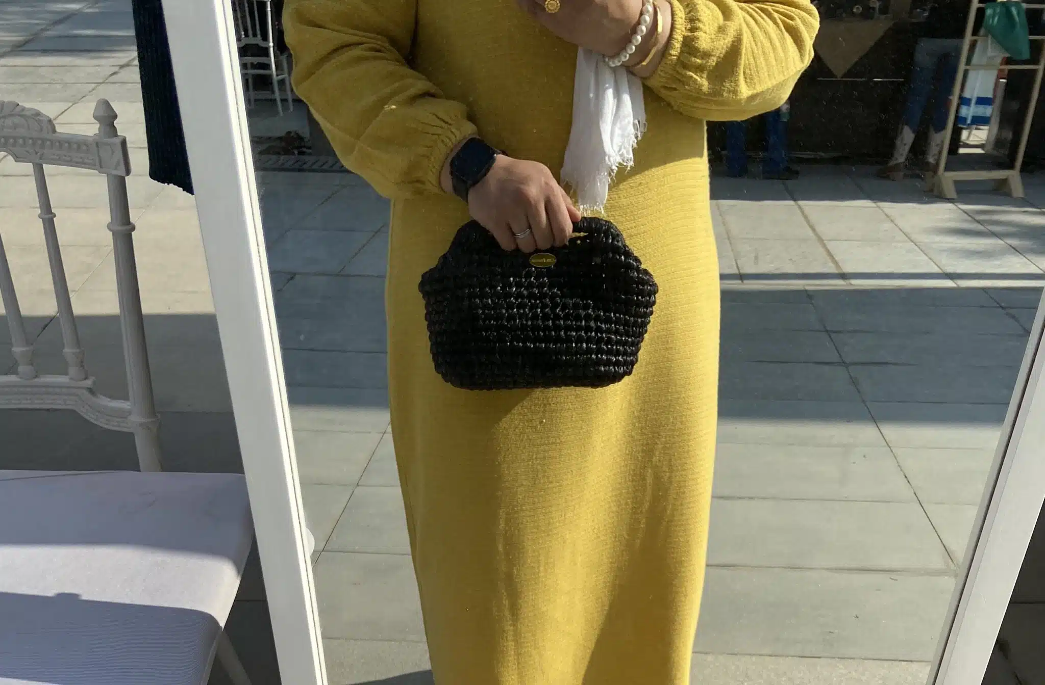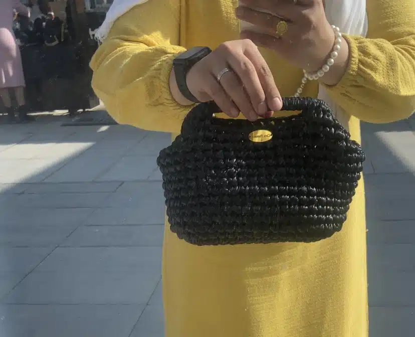 شنطة متوسطة الحجم بتصميم مميز معها يد ذهبيه يمكن حملها ك (كلاتش) او على الكتف