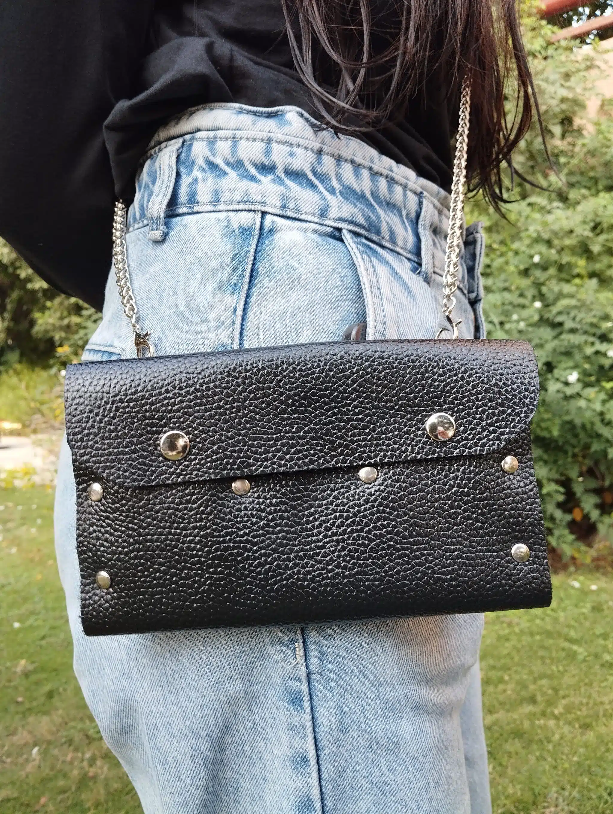شنطه جلد طبيعي كروس اللون اسود