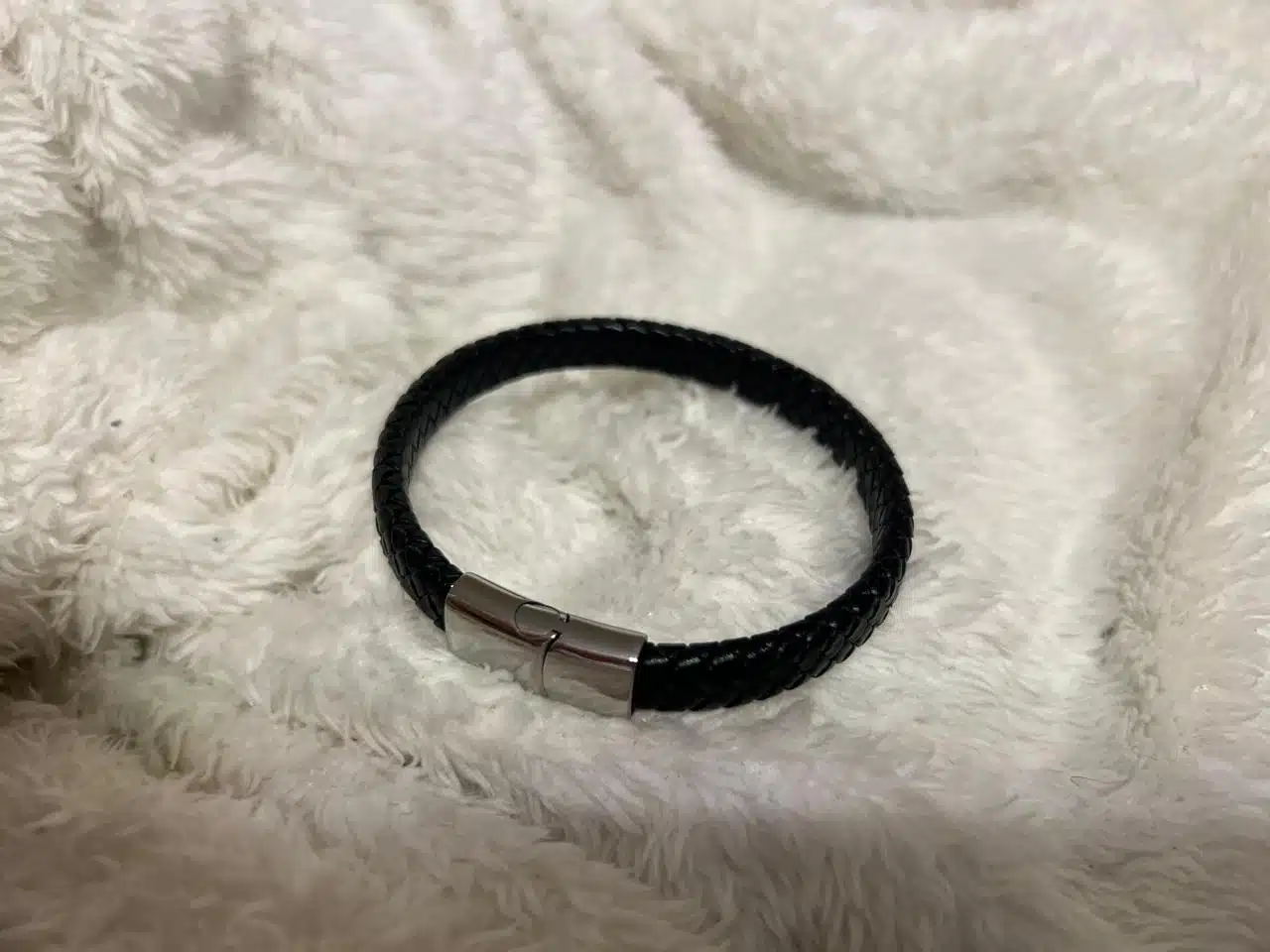 Black high quality leather men’s bracelet with silver stainless steel lock