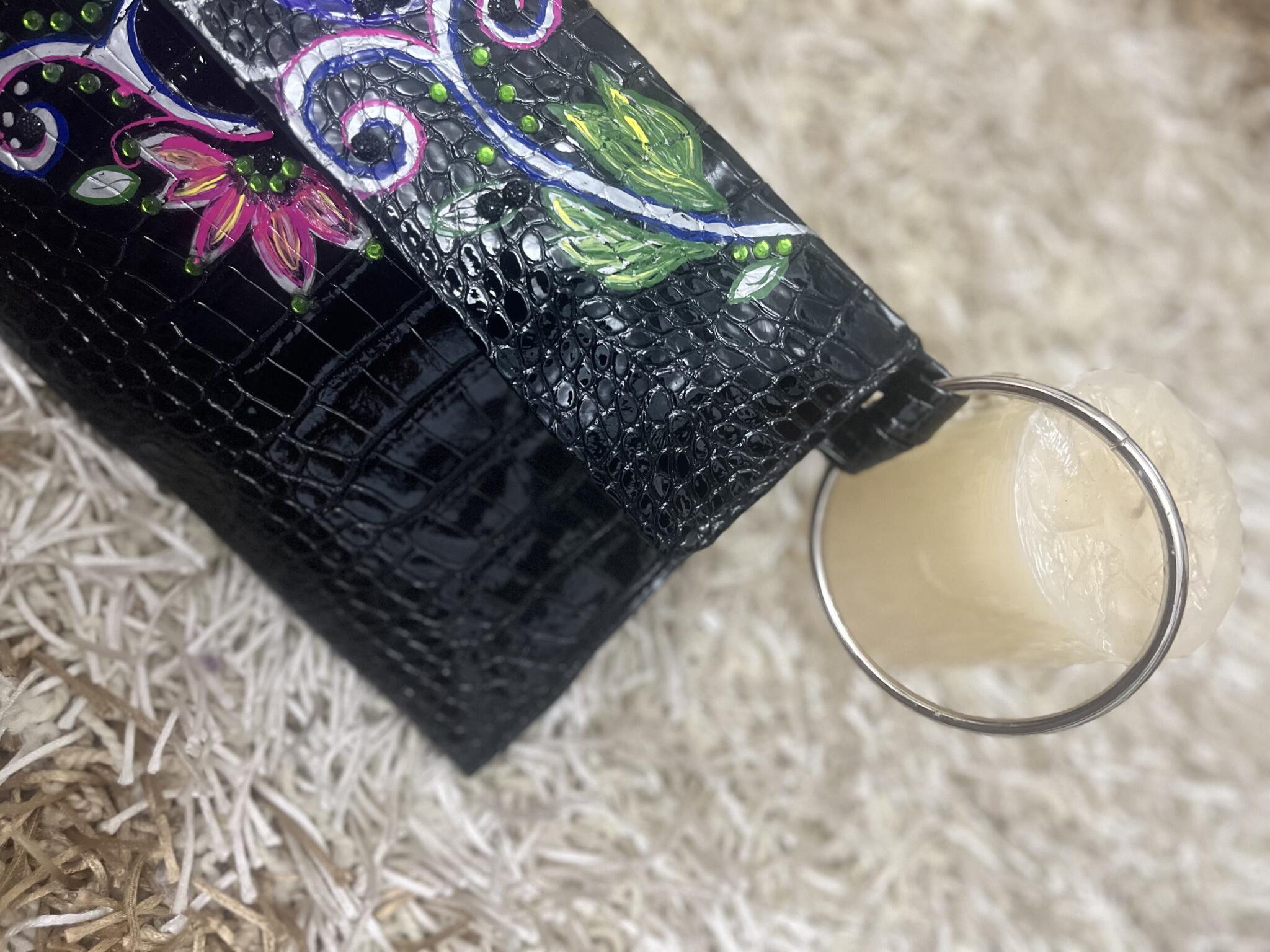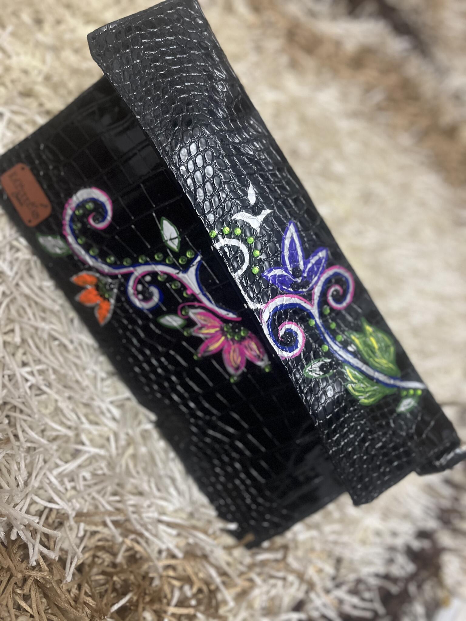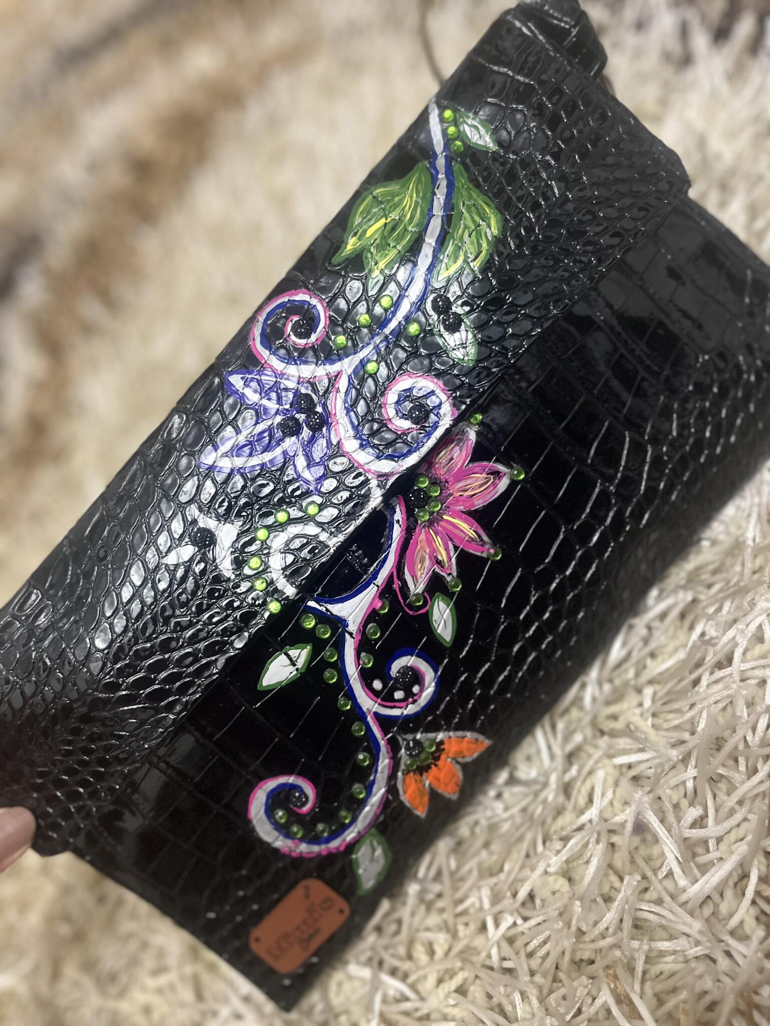 Black leather clutch