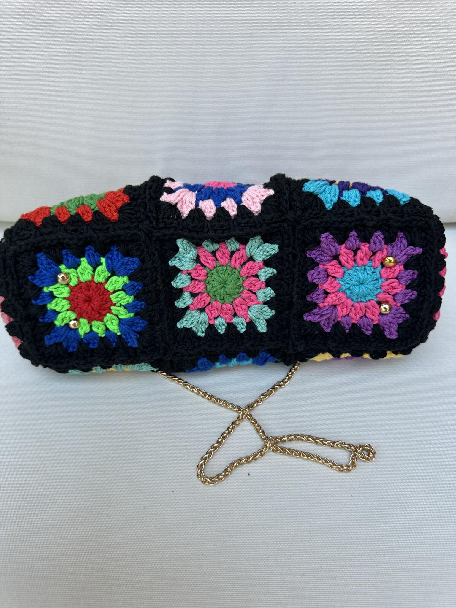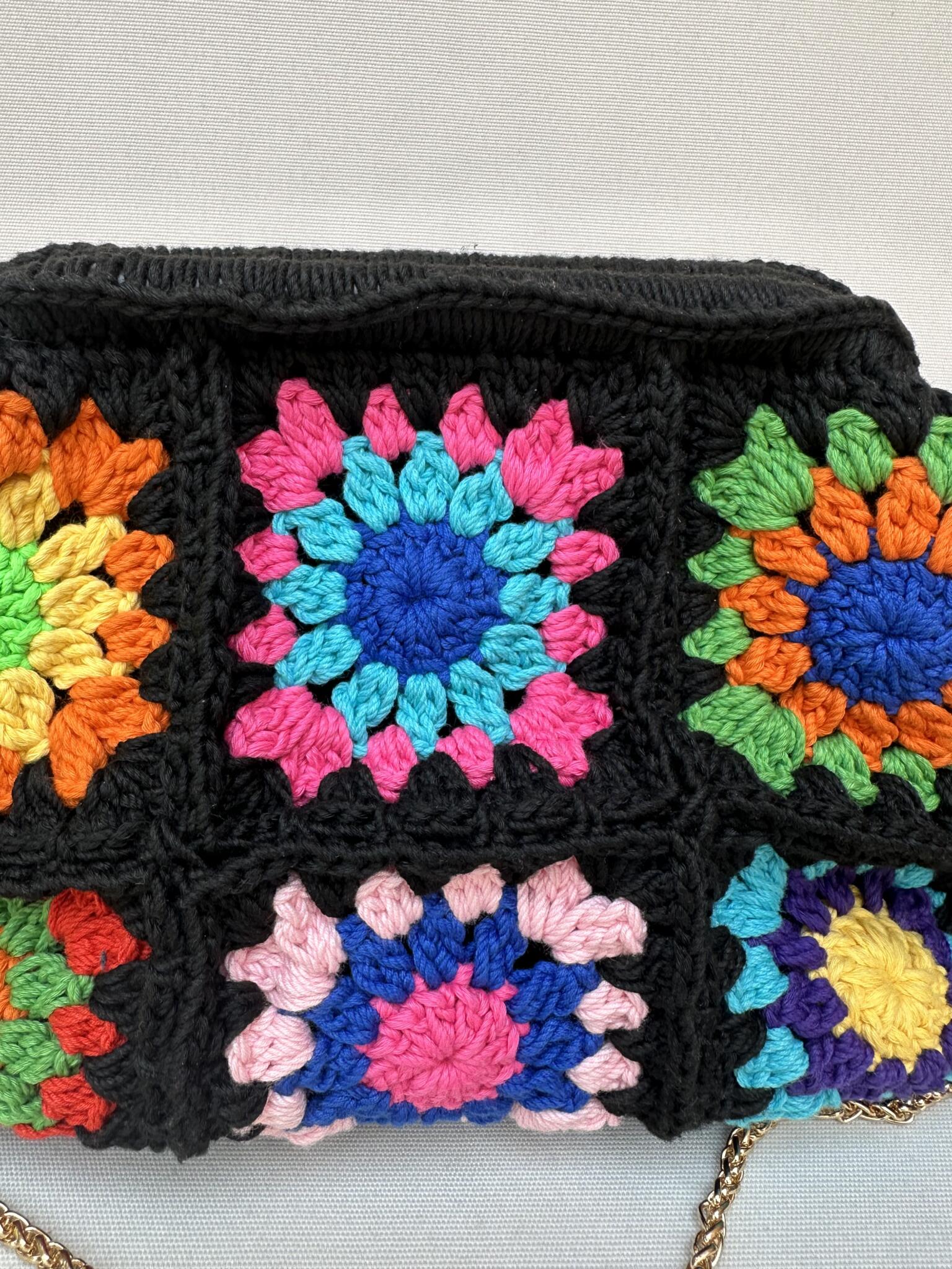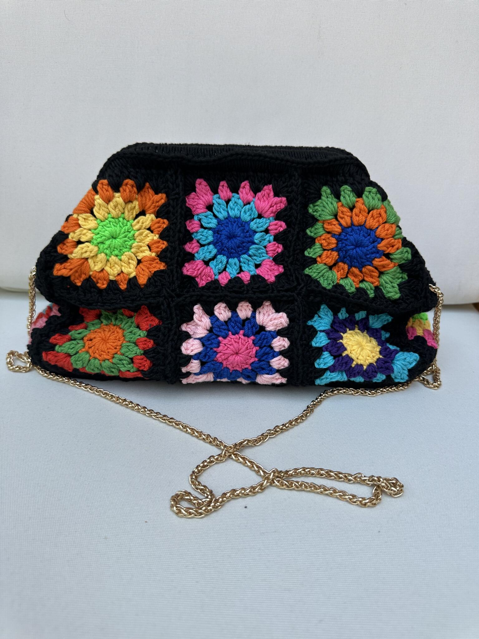 Black granny square clutch made from cotton threads very trendy and suitable for all ages