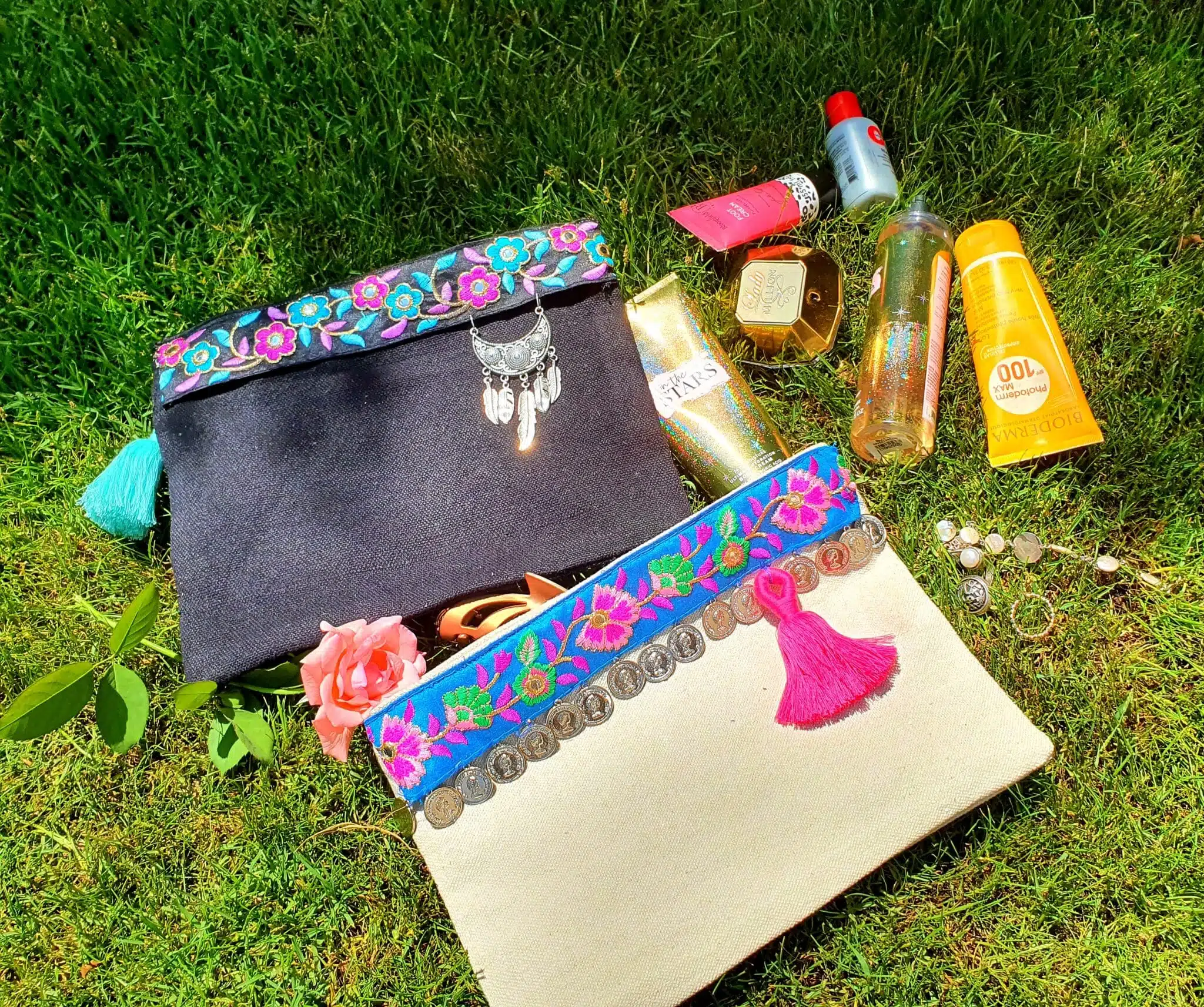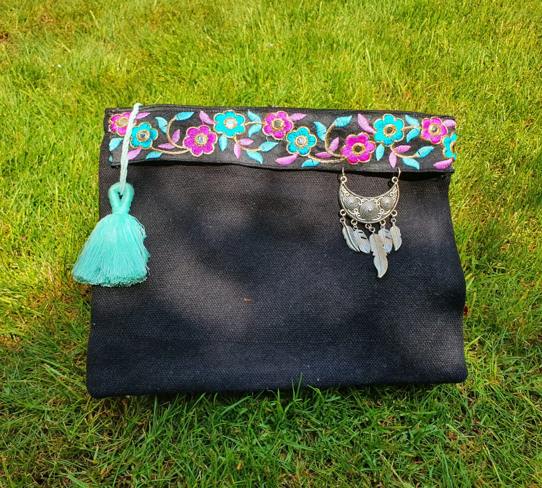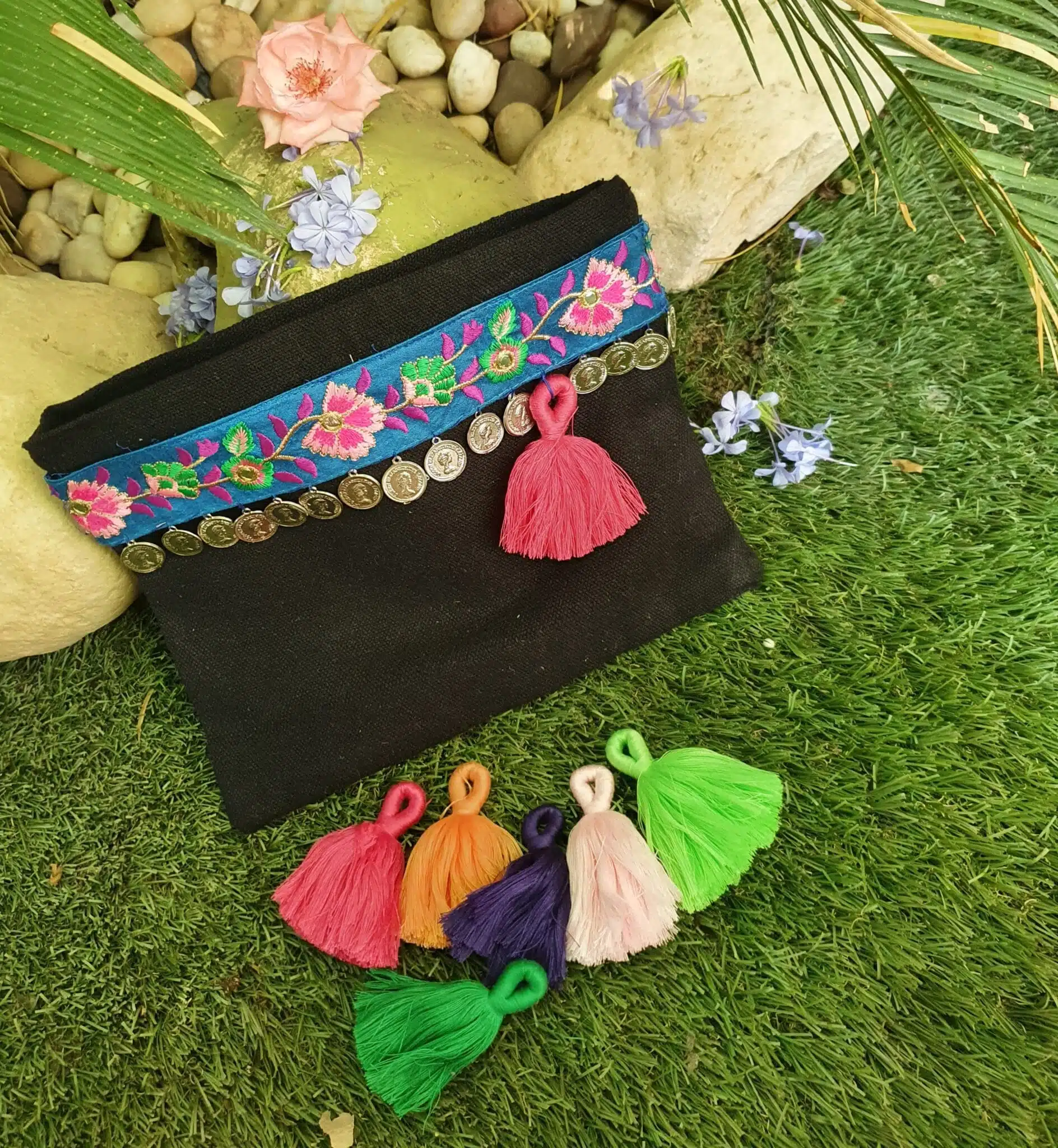 Handmade embroidery clutch with metal coins 30×20 cm. Backorder in 7 working days .