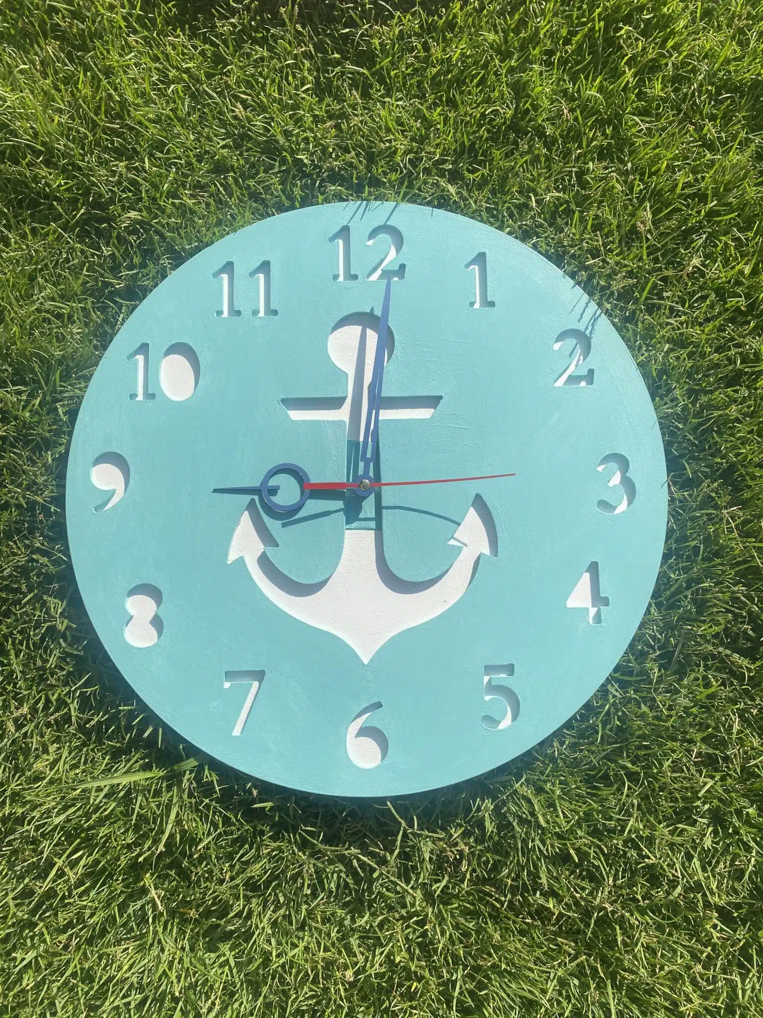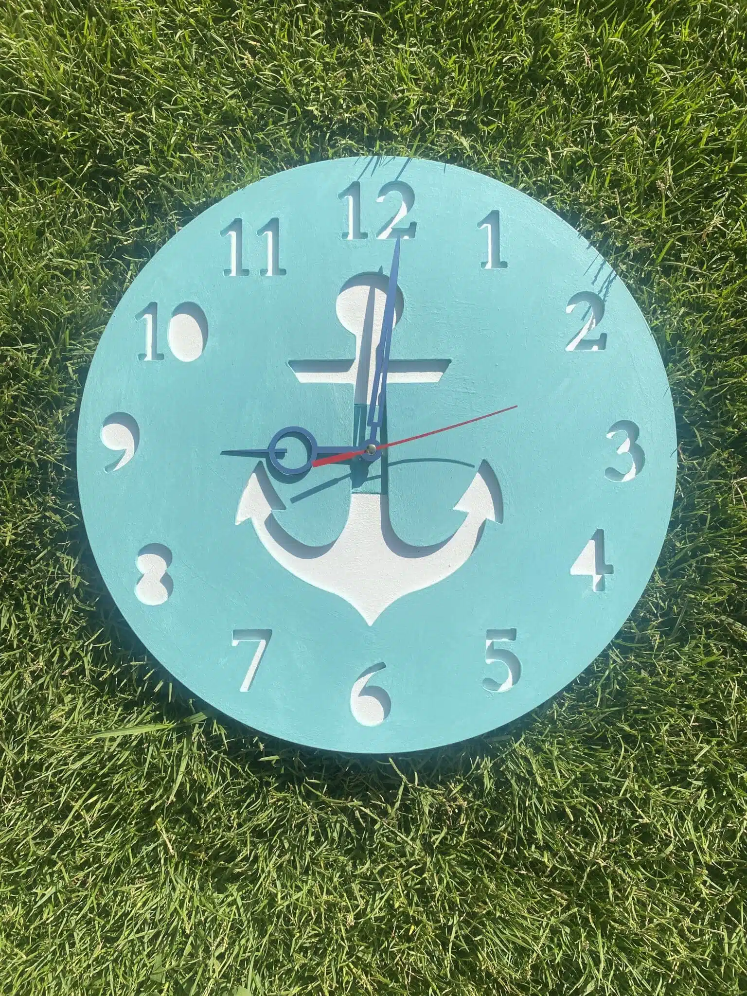Wooden anchor summer wall clock in blue color