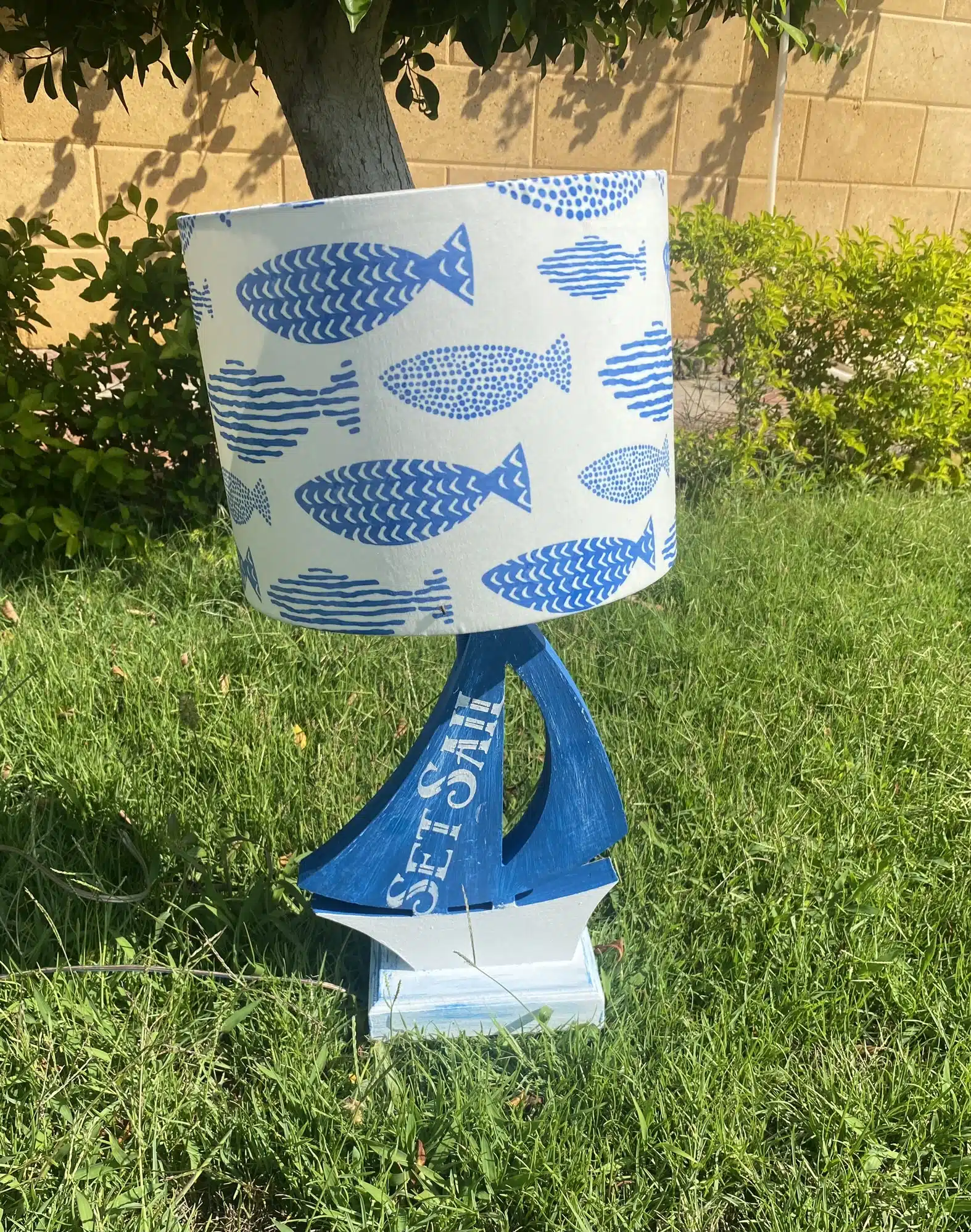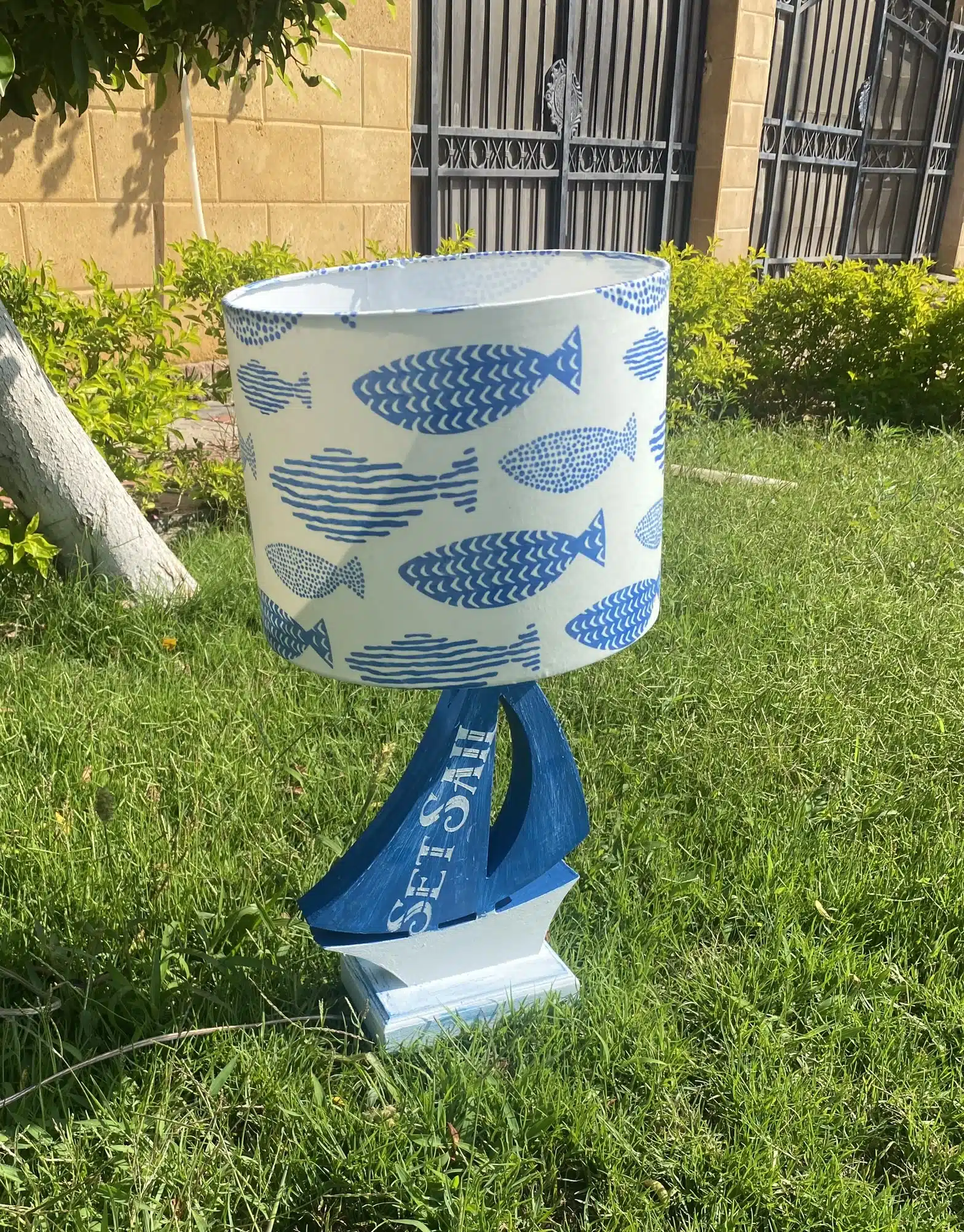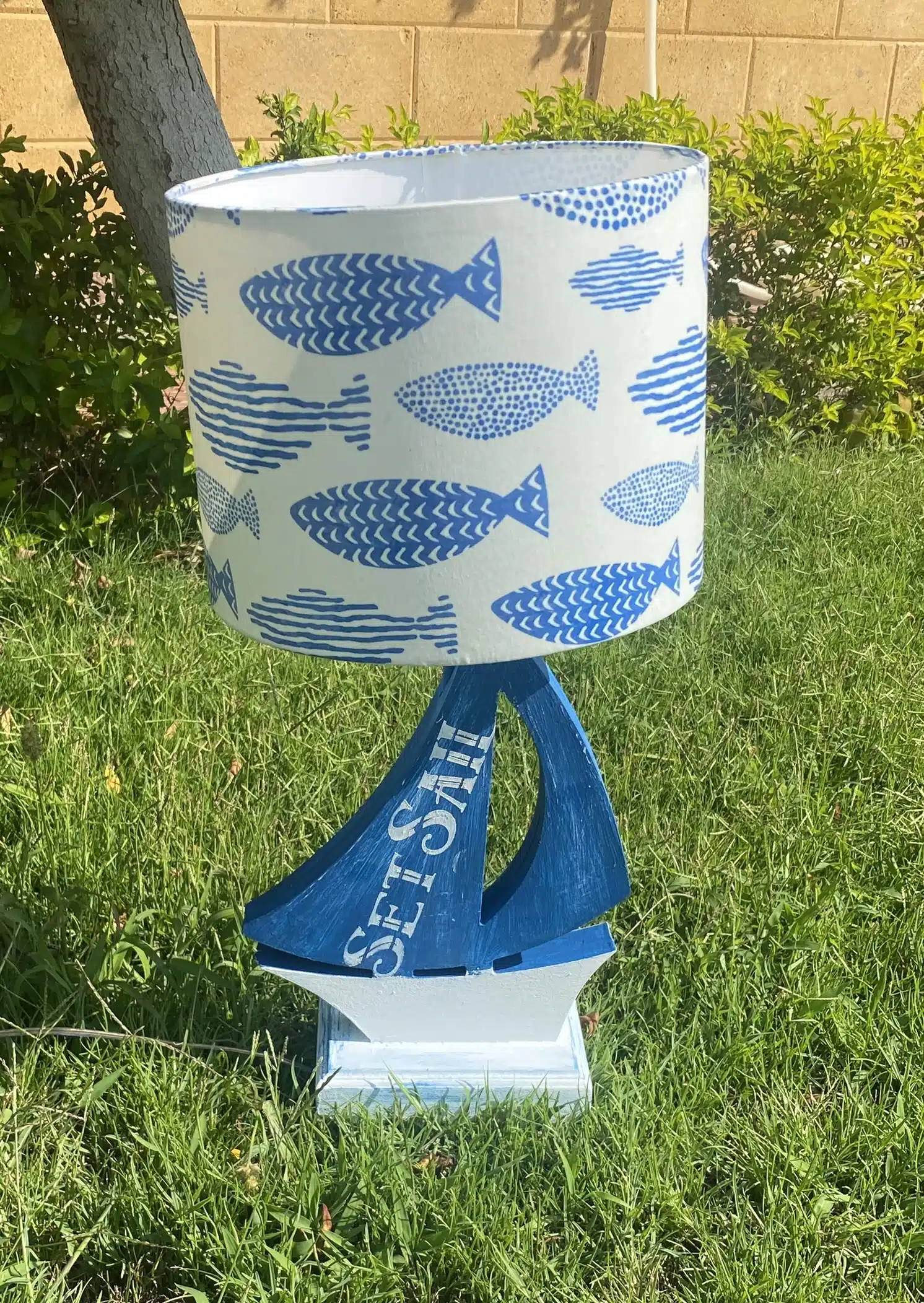 Wooden side lamp in boat design