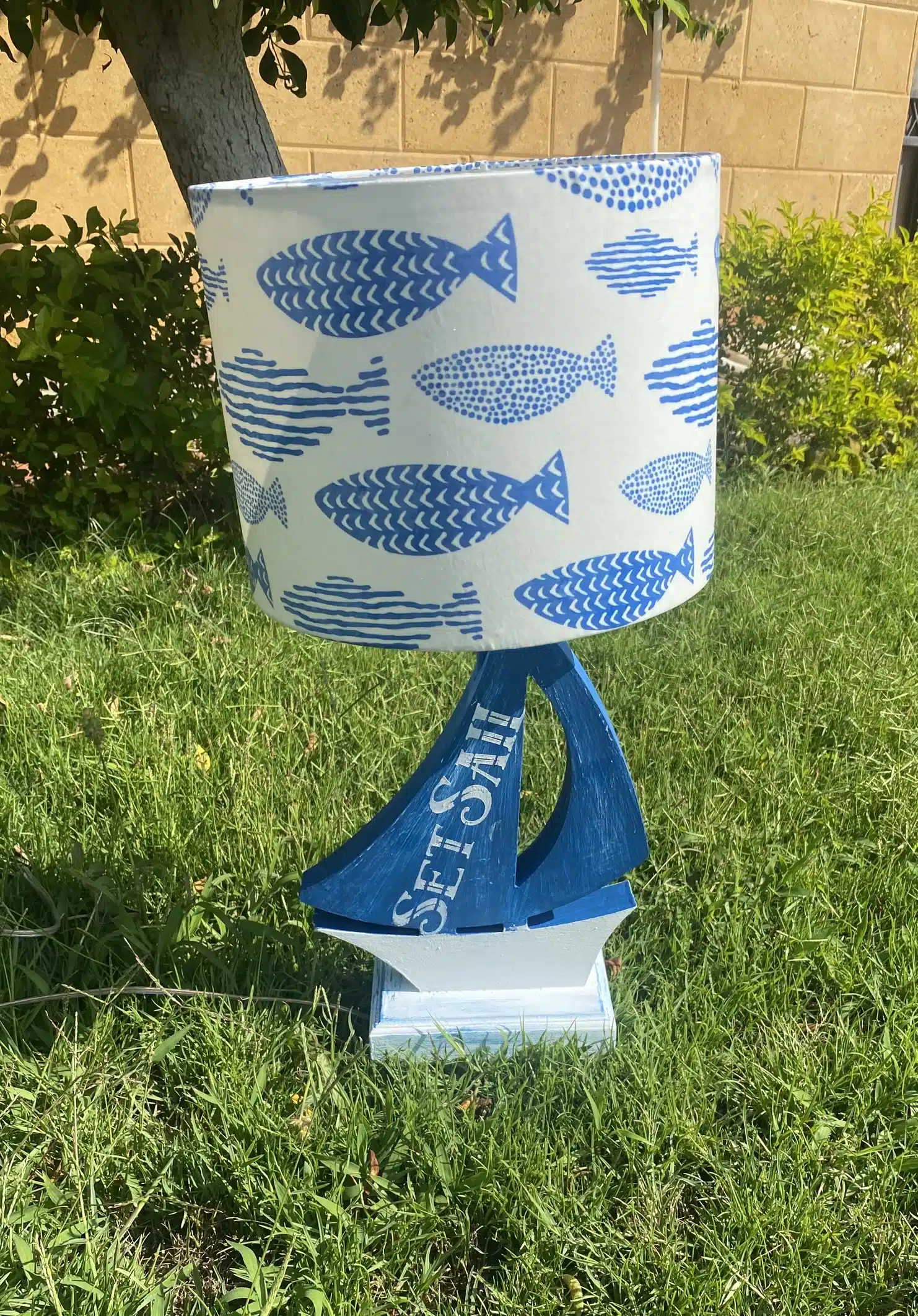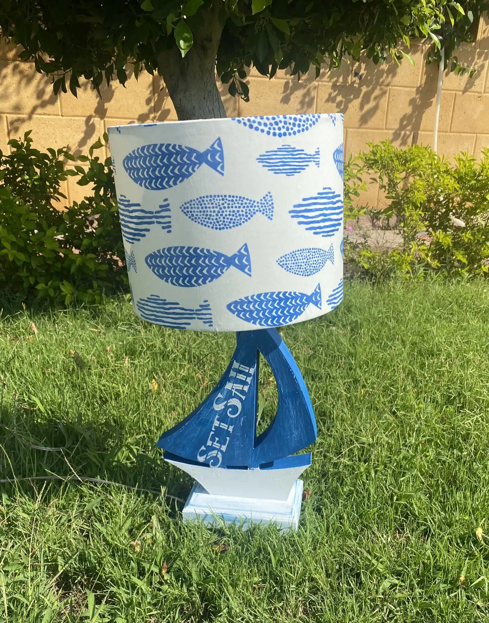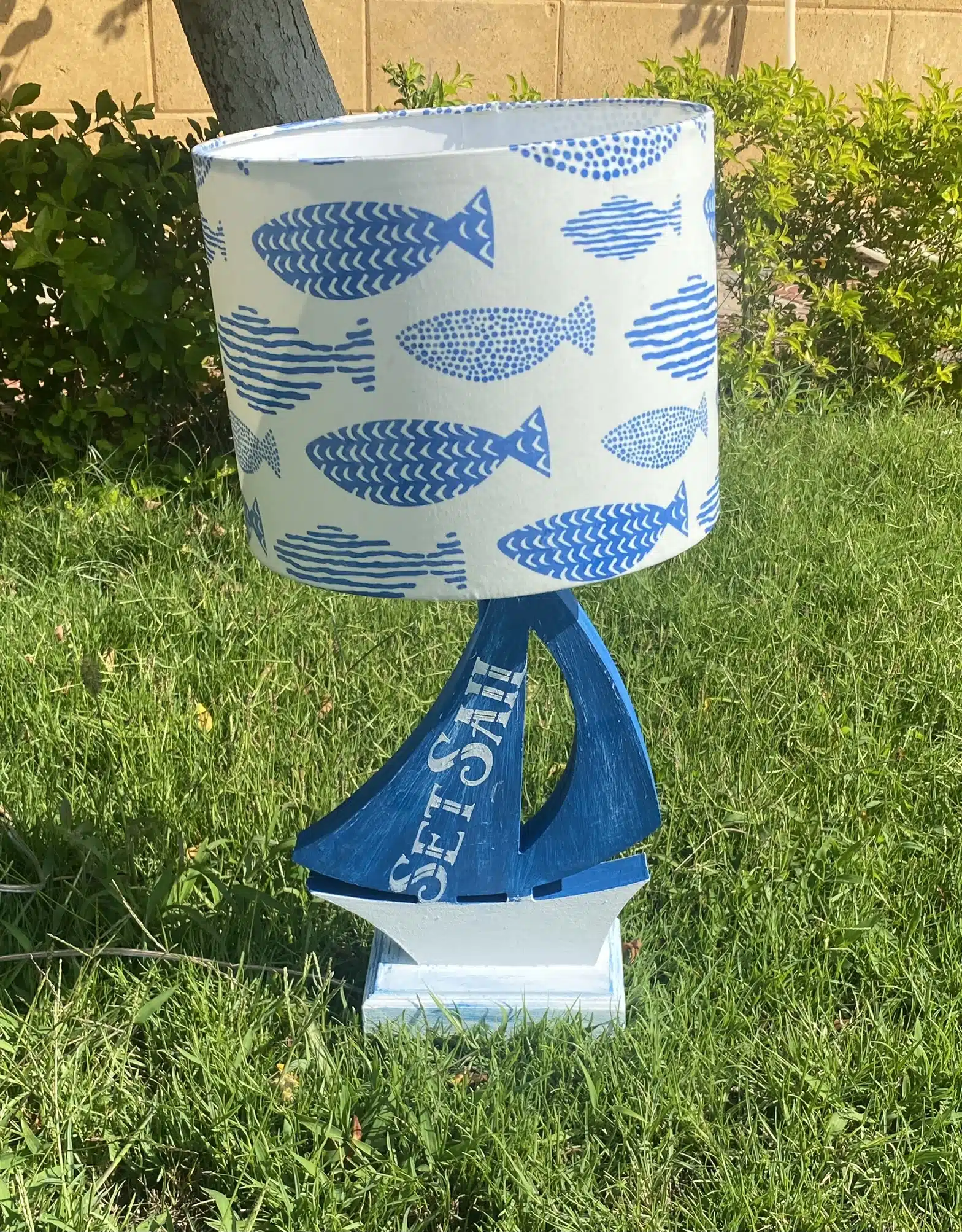 Wooden side lamp in boat design