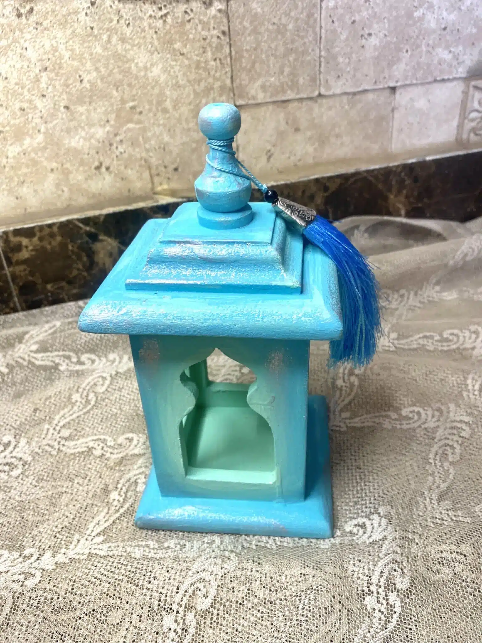Wooden decorative set for Ramadan: 3 candle holders and small fanous