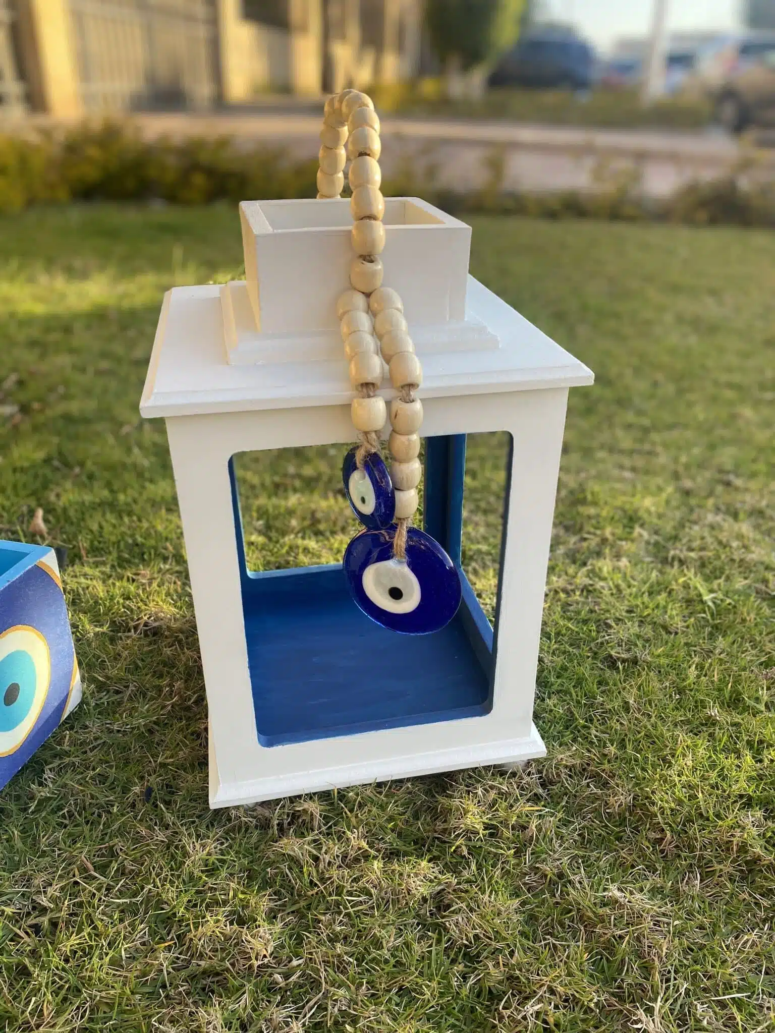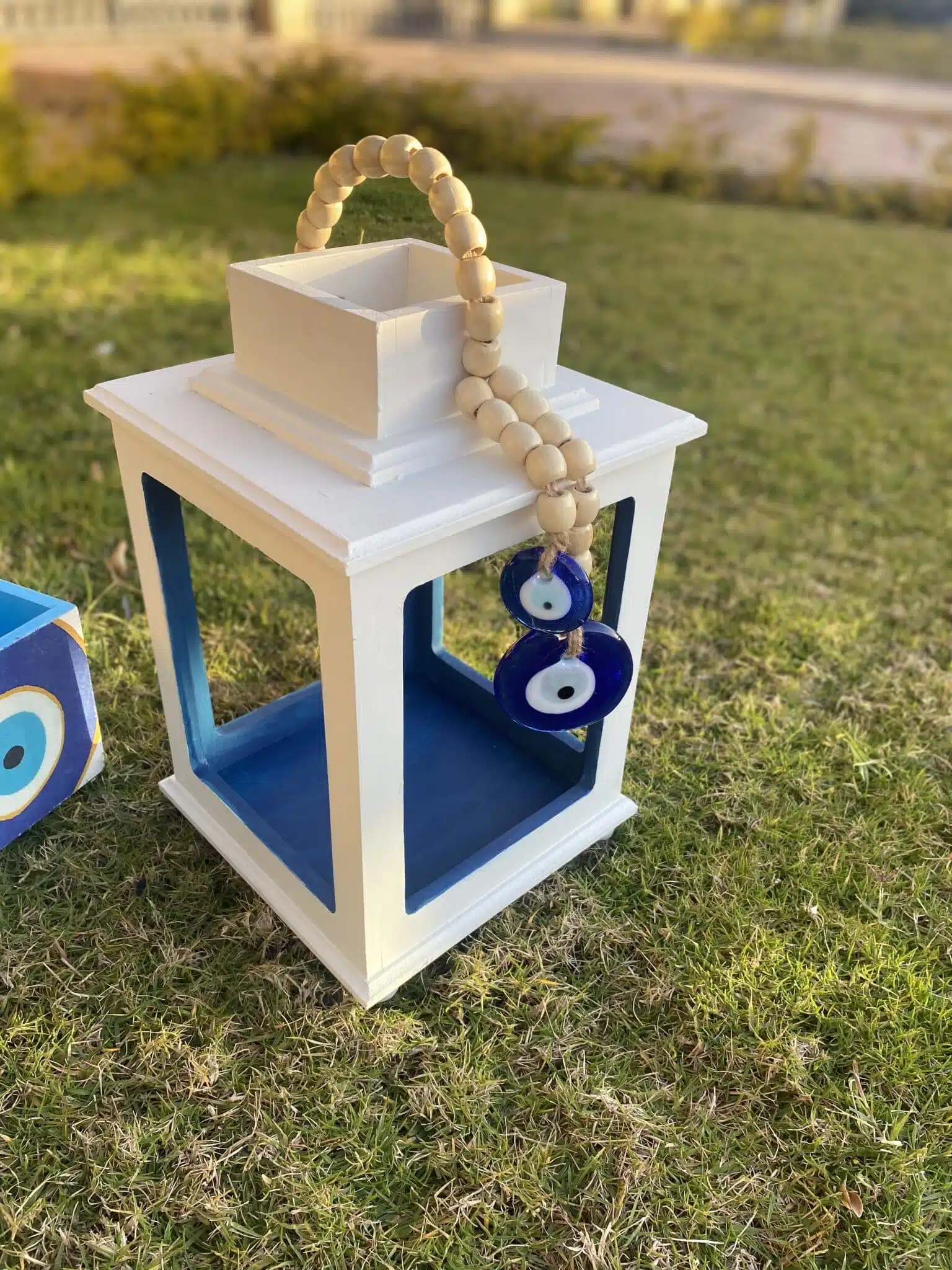 Wooden fanous with evil eye decoration