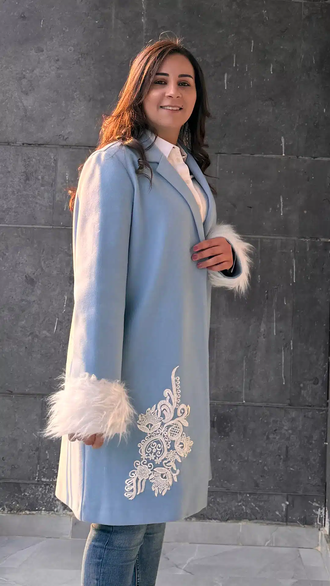 Blue fur jacket