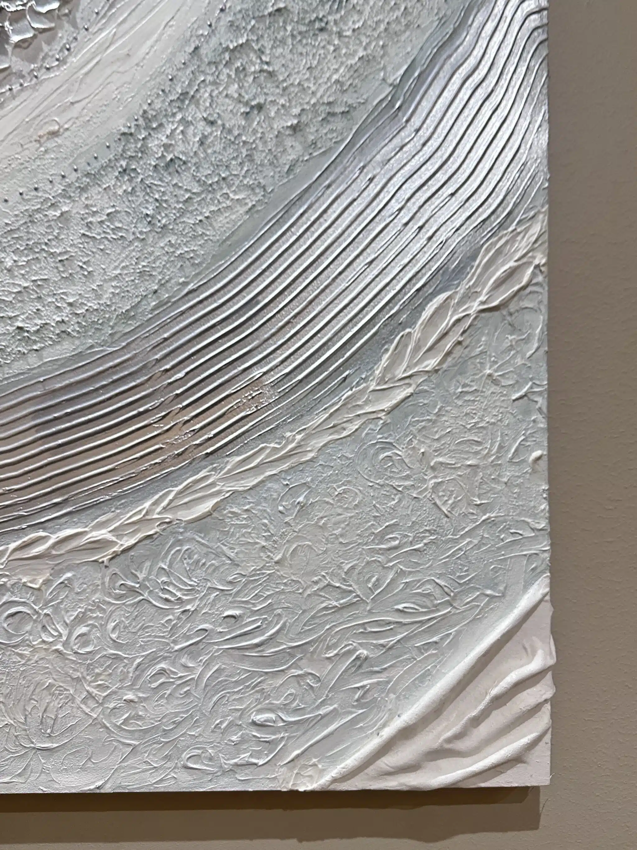 A unique design with simple light blue shades and silver that gives brightness the wall