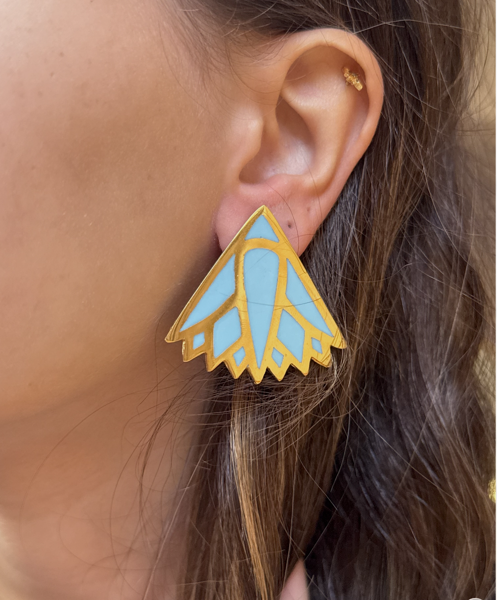 baby blue lotus earring. copper gold platted.