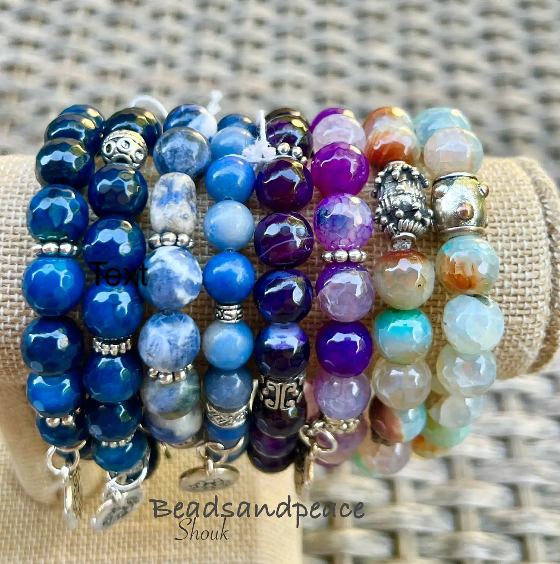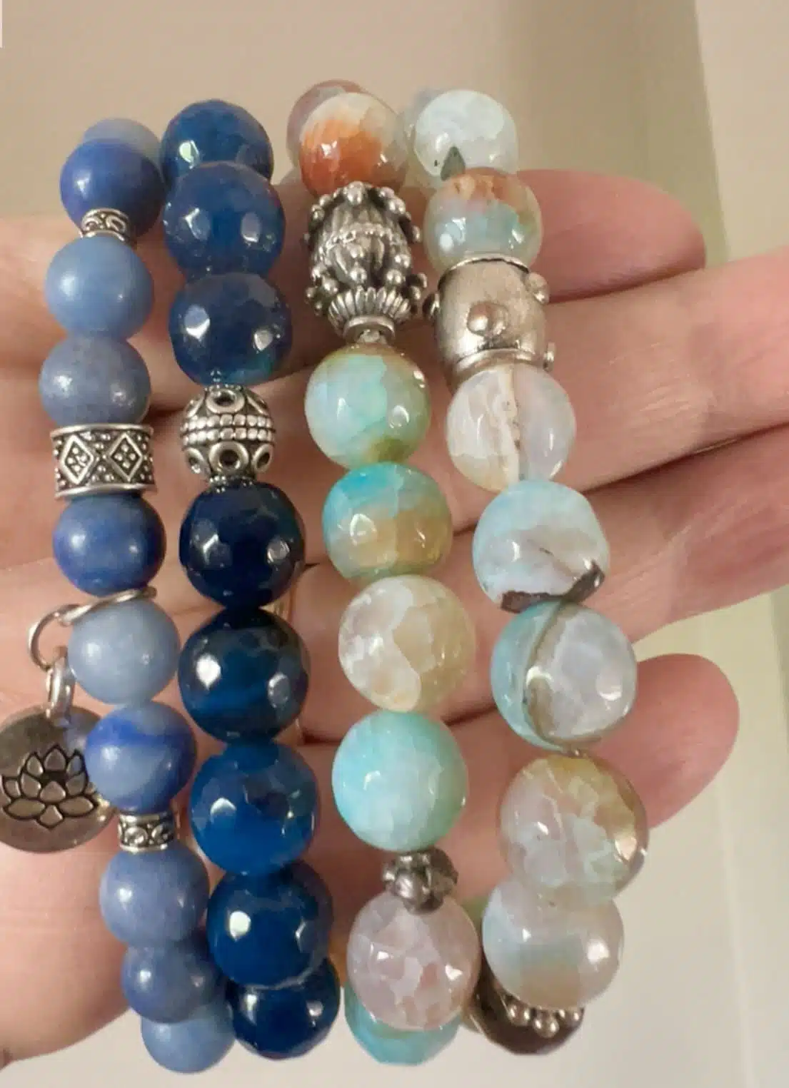 A gorgeous blue tone stretch bracelets, you can stack them up for cool images, or wearing individual, they great for summer or any season, make pale outfits beautiful.