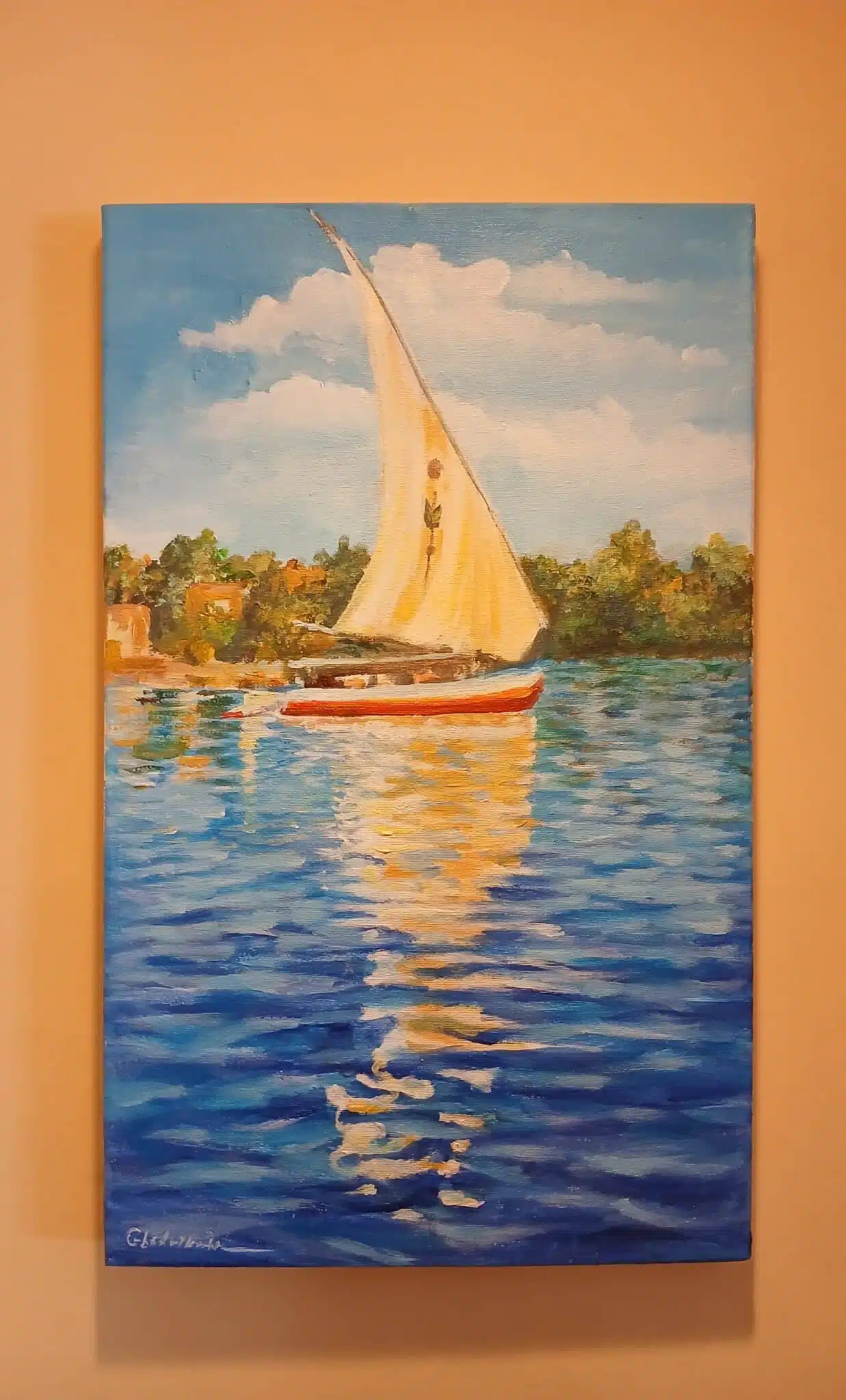 Hand painted by acrylic colours to represent the beauty of nile river in Aswan ❤️