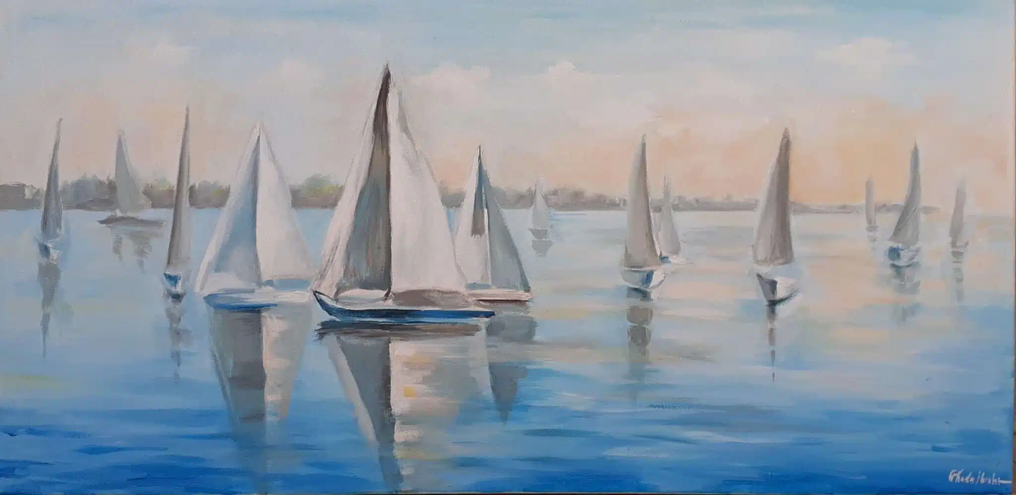 The boats painting is beautiful. The colours are very calm and relaxing. It is even more magnificent in reality. We love it. Way to go 👏🏼👏🏼👏🏼