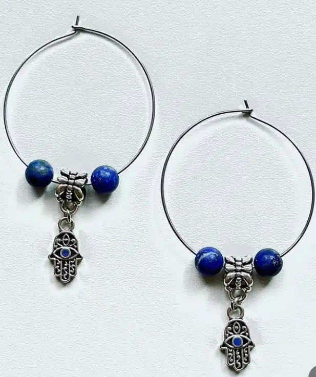 Boho créoles earrings with lapis lazulis and Fatima hands