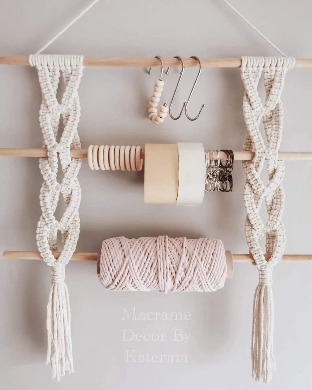 Handmade macramé wall organizer – stylish and practical! Perfect for keeping your craft tools, threads, and essentials in one chic place. ✨🧵”