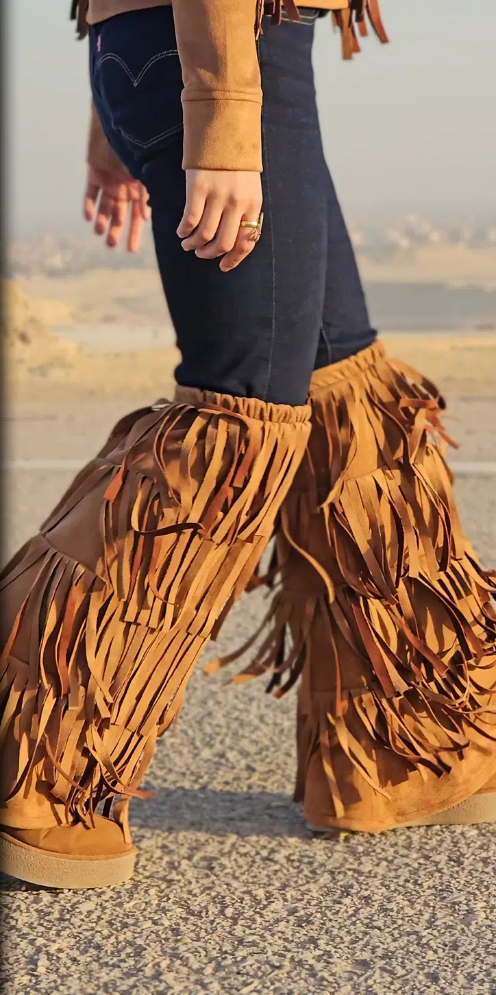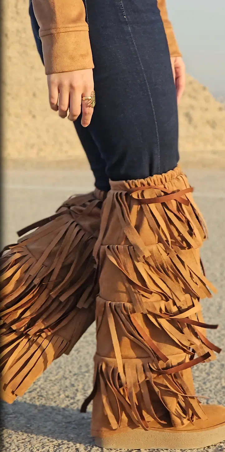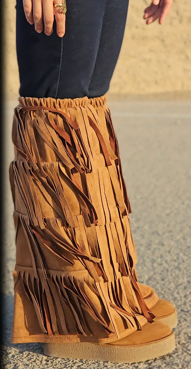 The Boot Anklet, crafted from suede and adorned with trendy tassels in havana, gives the boots a stylish look, adding a chic touch to any footwear.