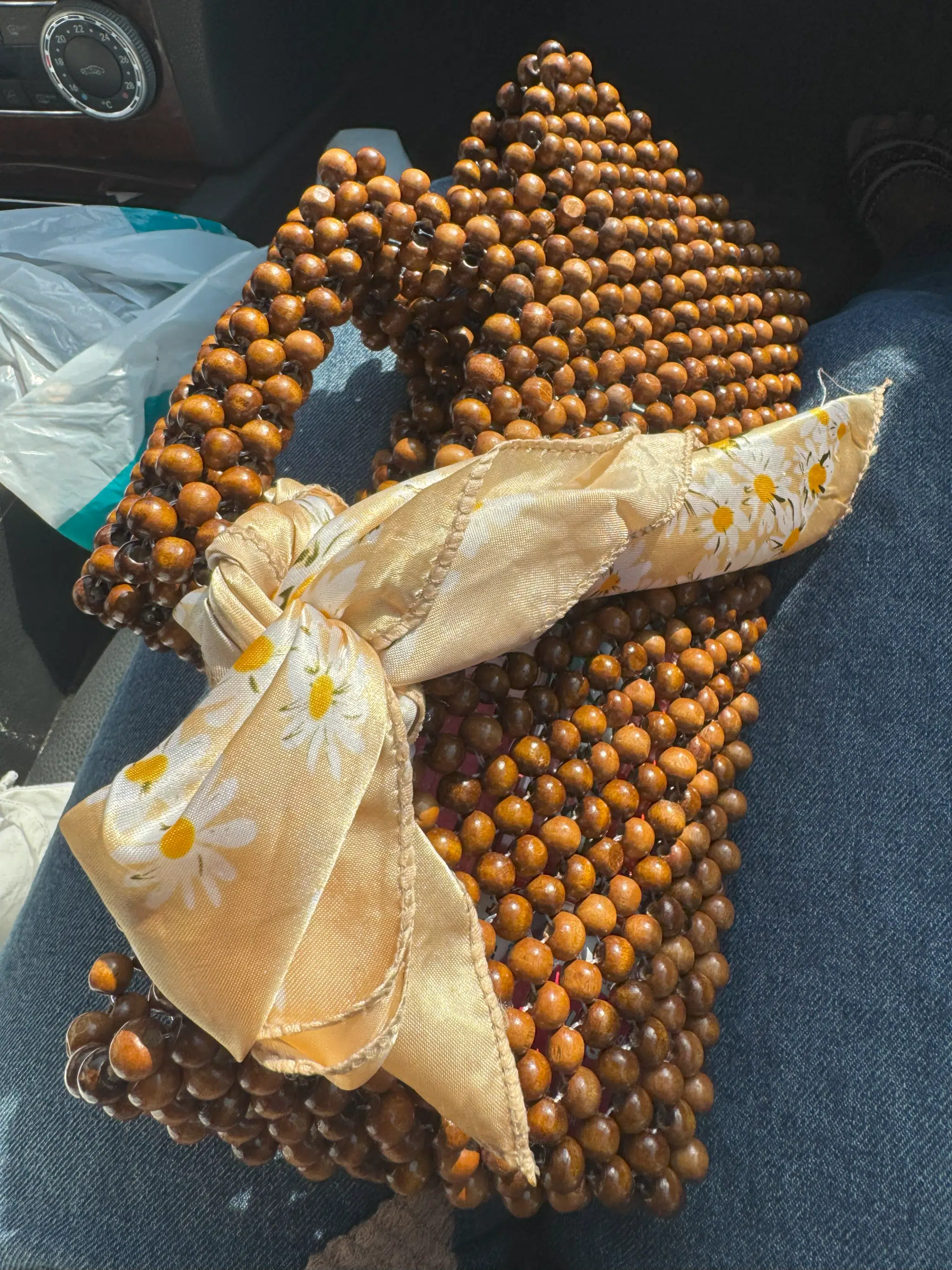 The Bottega Wooden Bag is a modern twist on timeless craftsmanship. Handmade entirely from natural wooden beads, it’s a bold yet elegant accessory that turns every outfit into a statement.