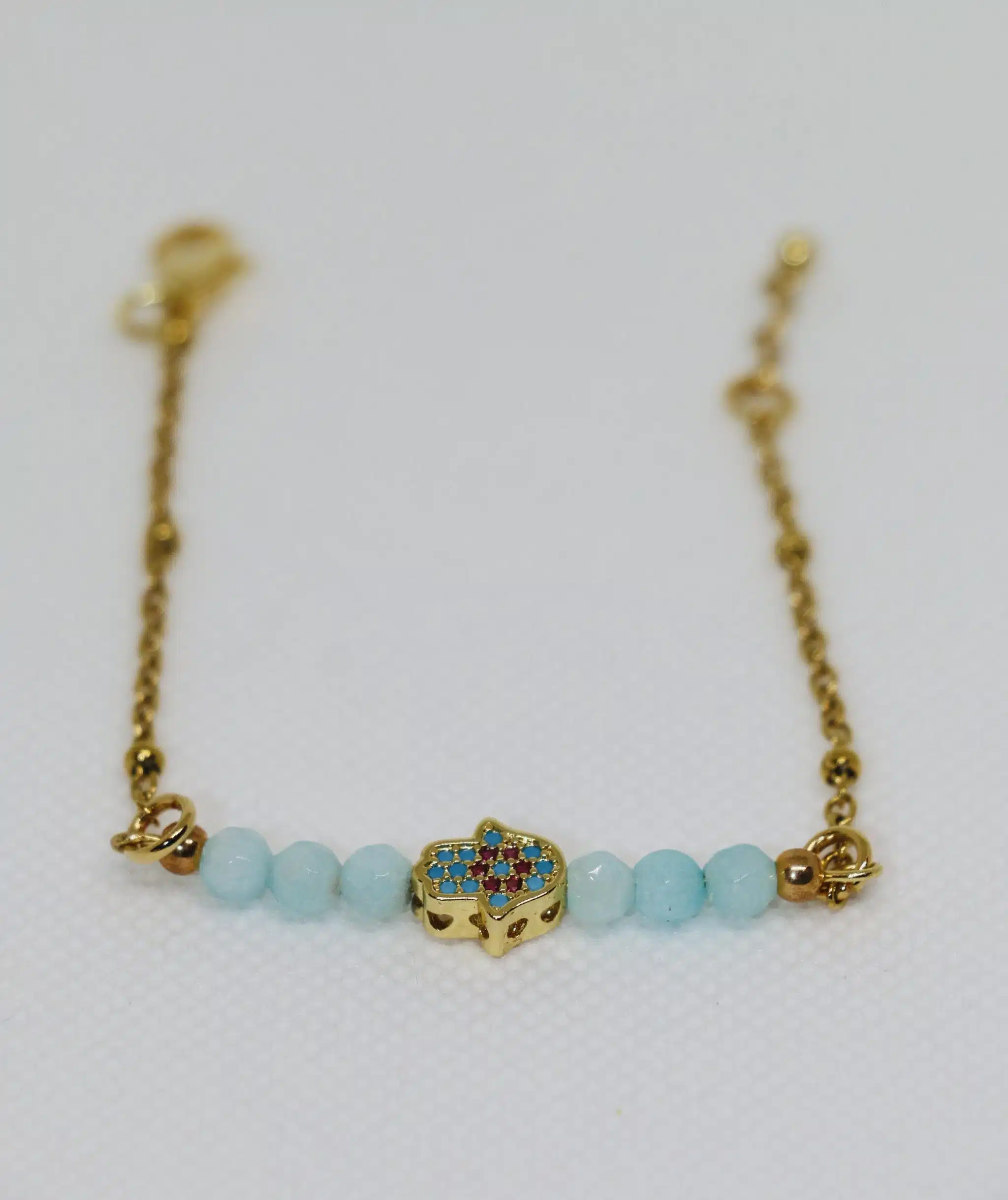 305 stainless steel bracelet with colored pearls and brass fatma hands with zircons