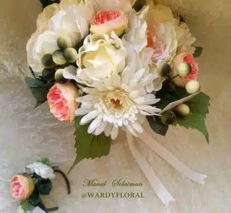 Bridal set ( bouquet & bracelet) in peach & cream silk flowers