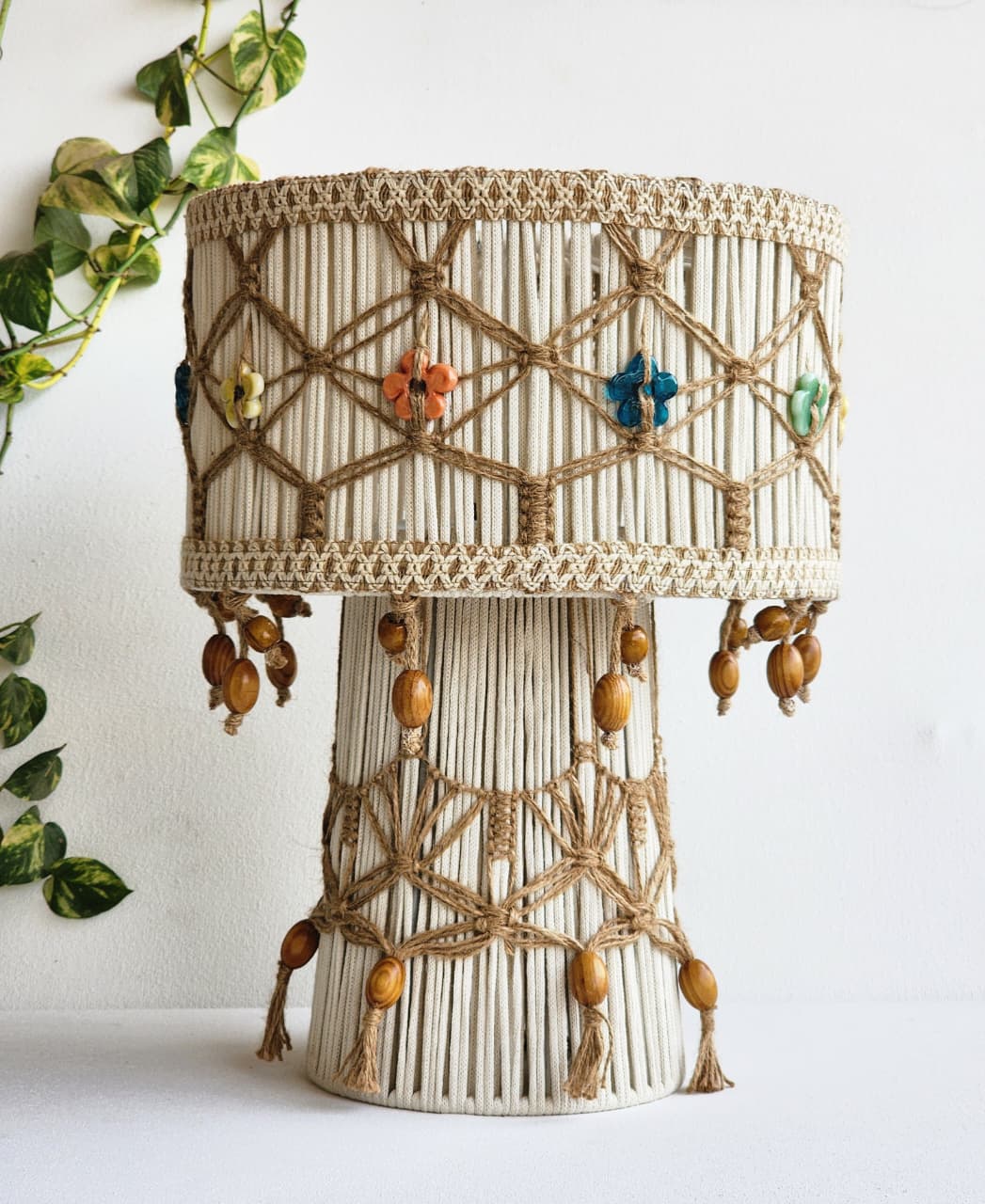 Materials: Jute rope , macrame rope , Glass charms and wooden beads.
