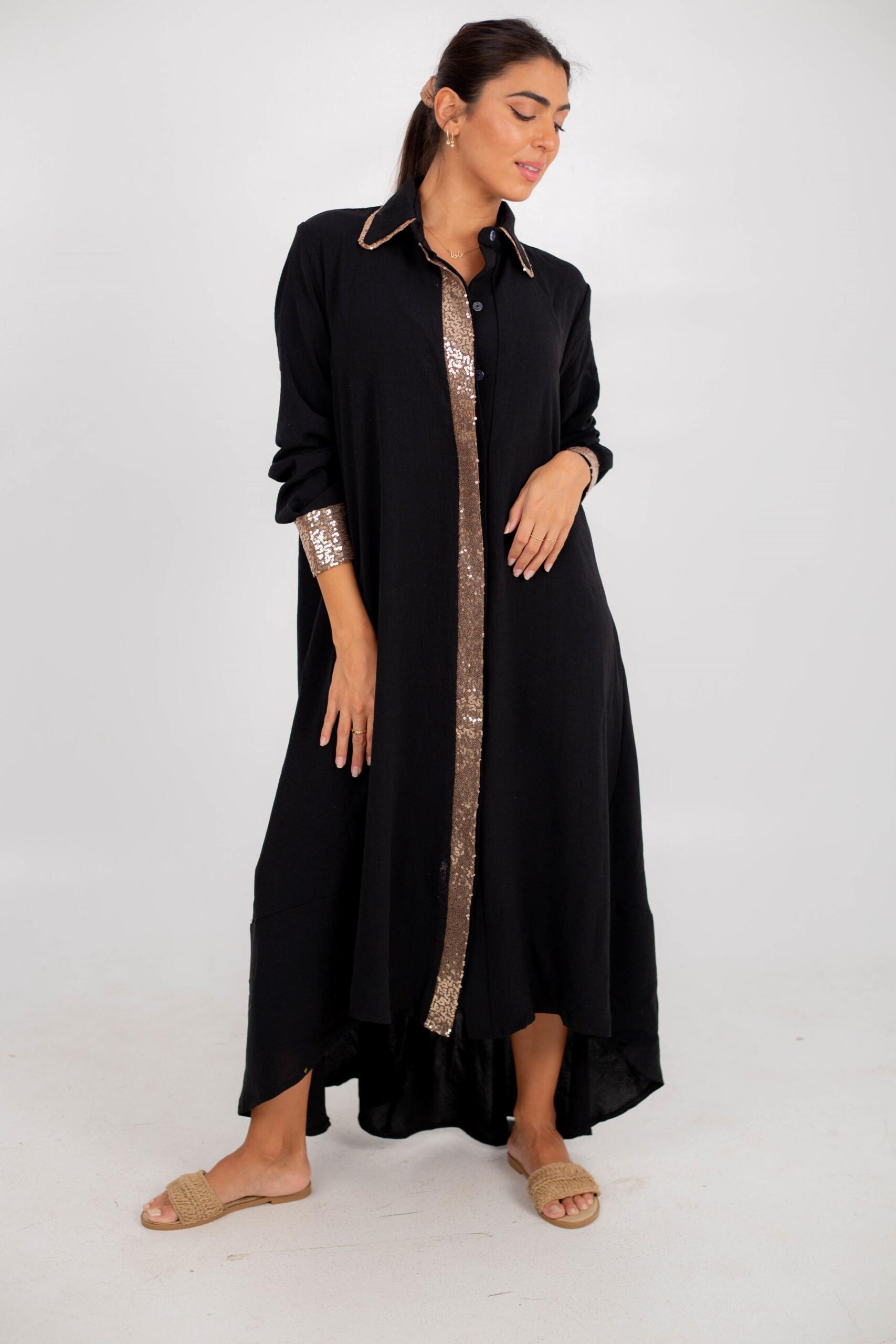 “Bronze Glamour: The Sequined Shirt Dress”
