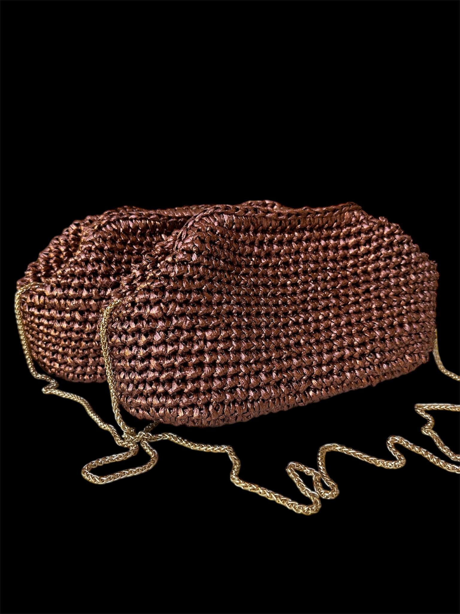 The bronze clutch made from raffia metallic threads