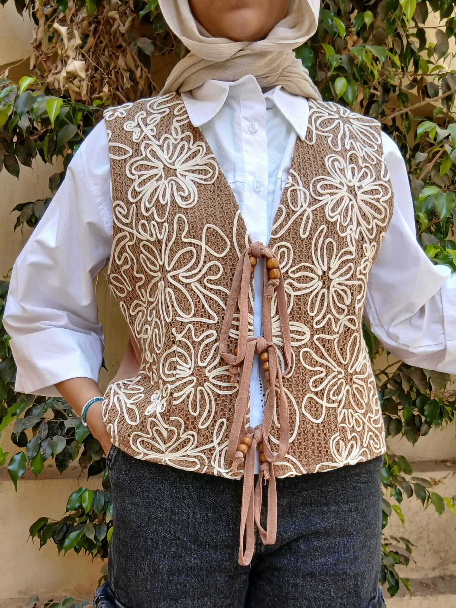 الخامه لينن ×شبيكه مشغوله بخيط بيج