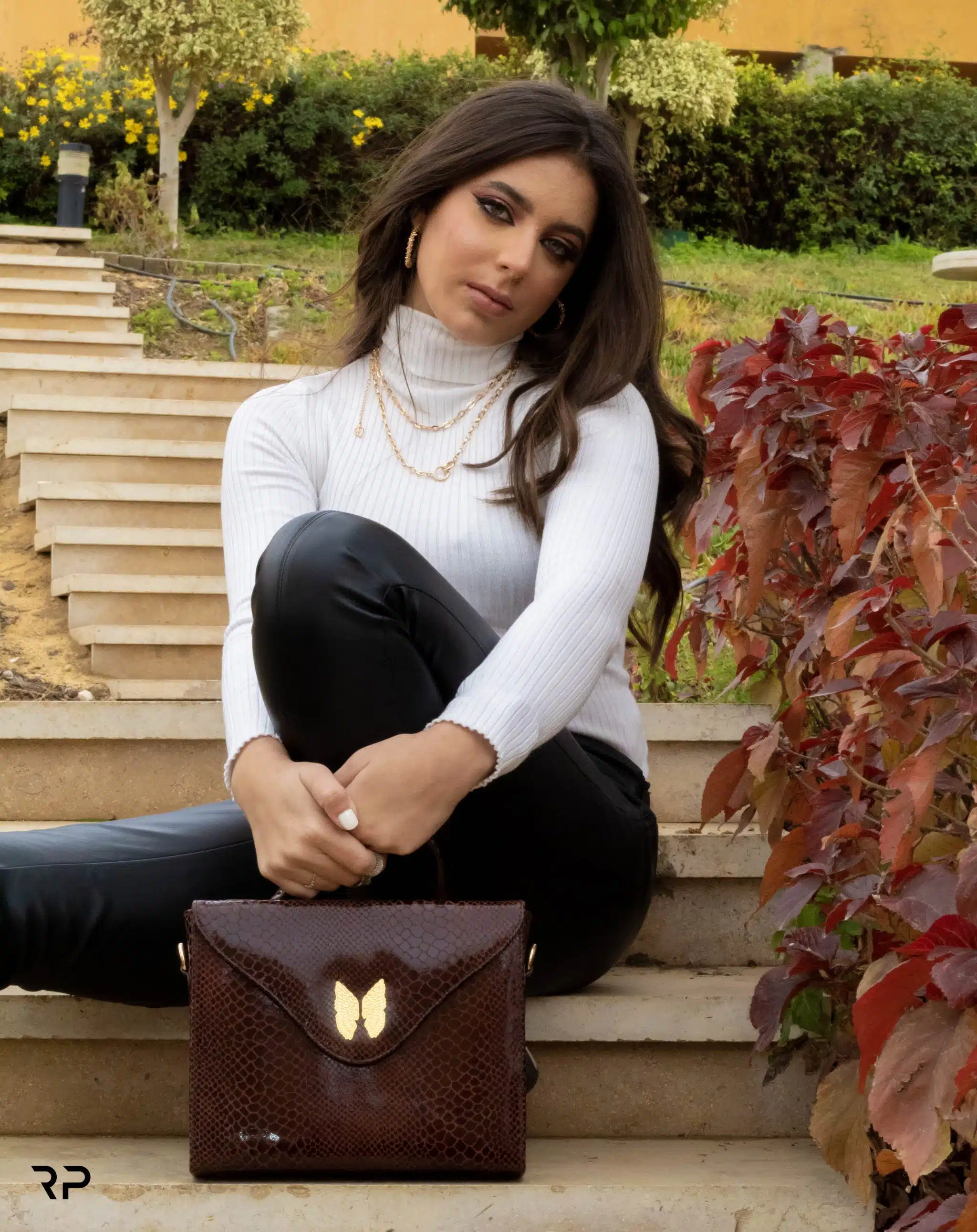 Brown lizard genuine leather bag