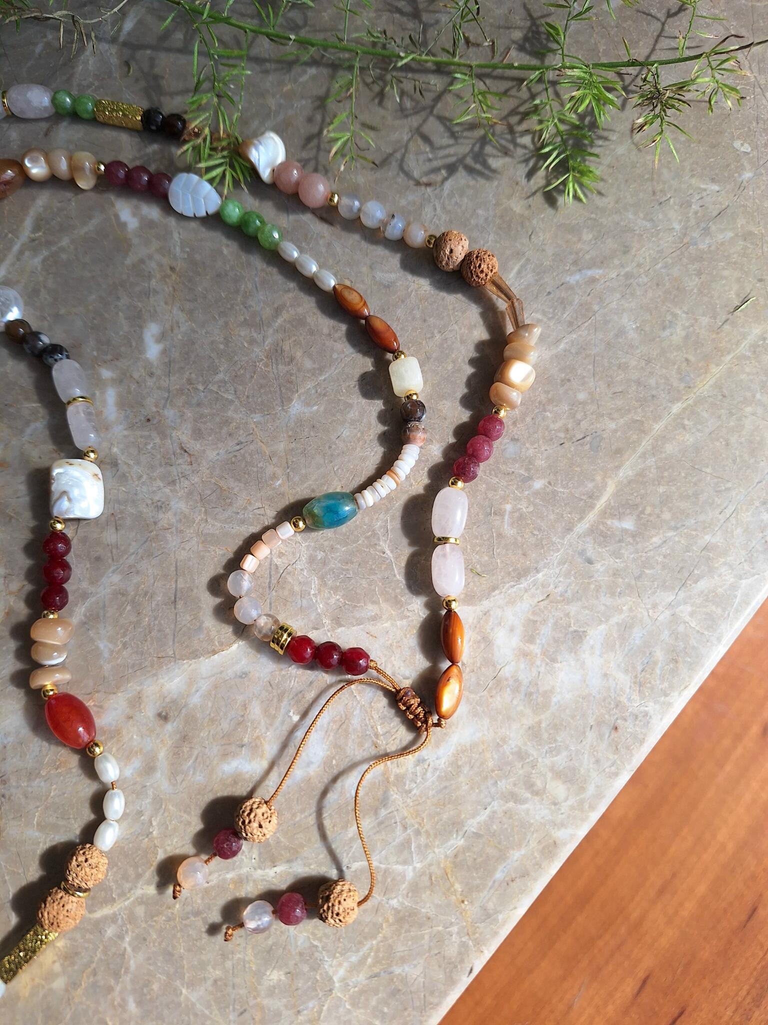 Handmade long mobile chain made of natural stones “shells & Agate stones ”
