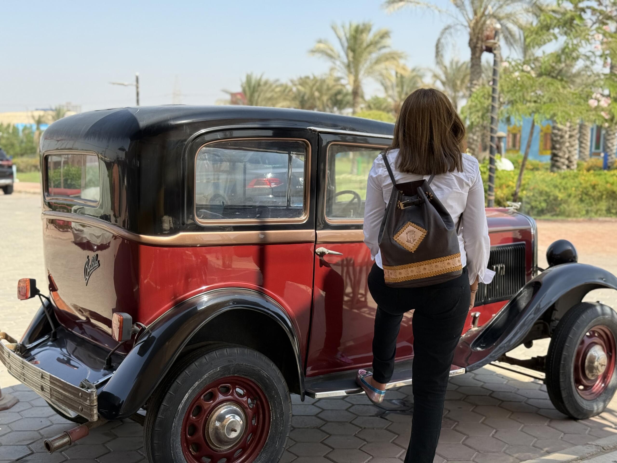 Hand-embossed Pharaonic inspired motif for unique heritage touch. Adjustable strap for everyday comfort perfect for travel,work,or casual outings.