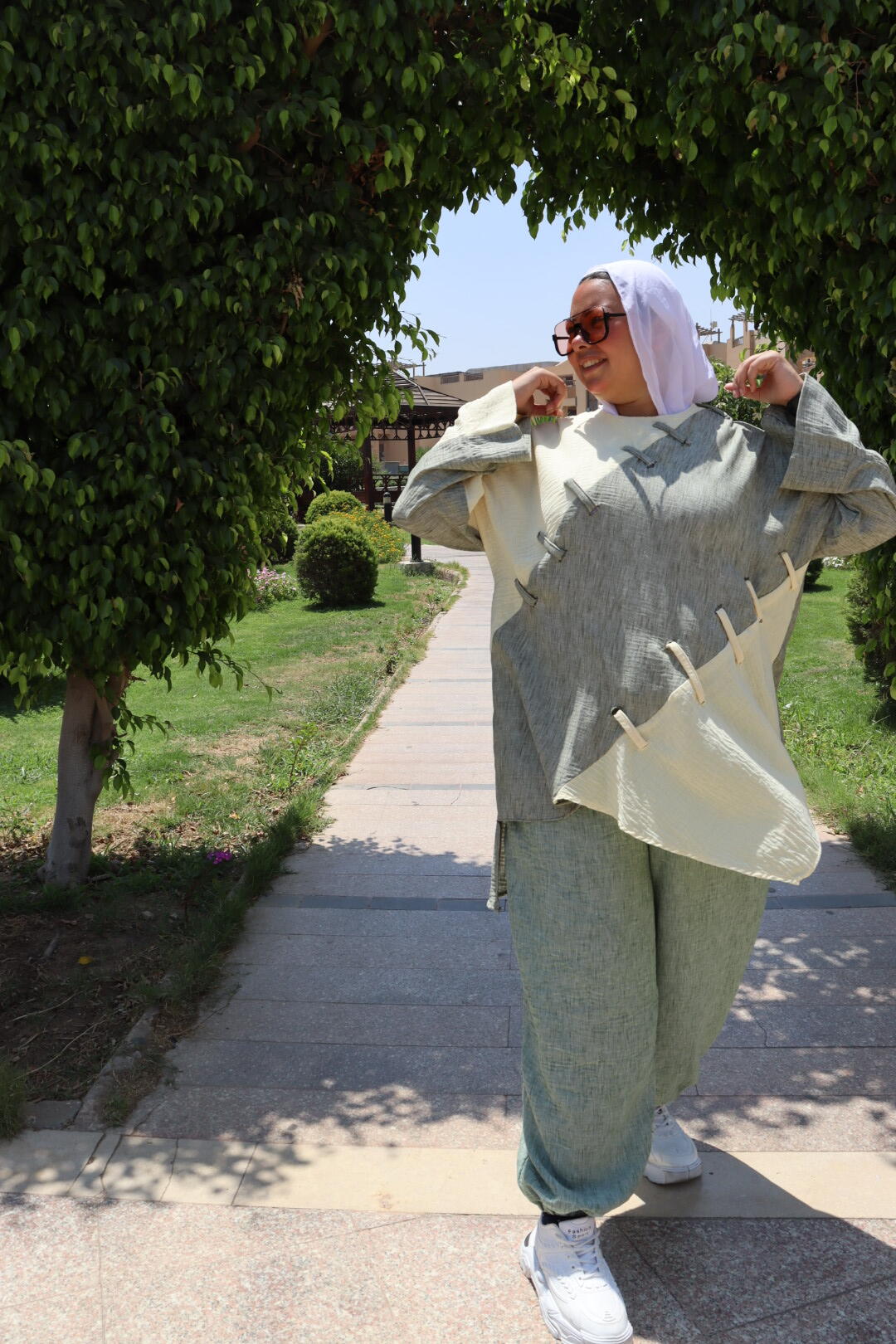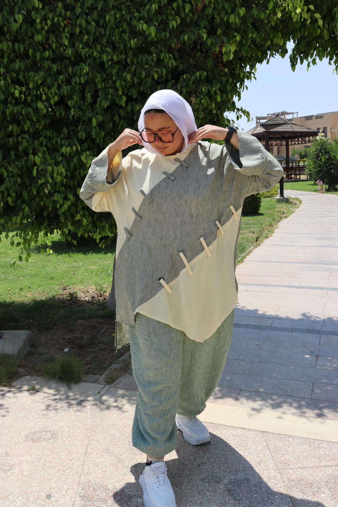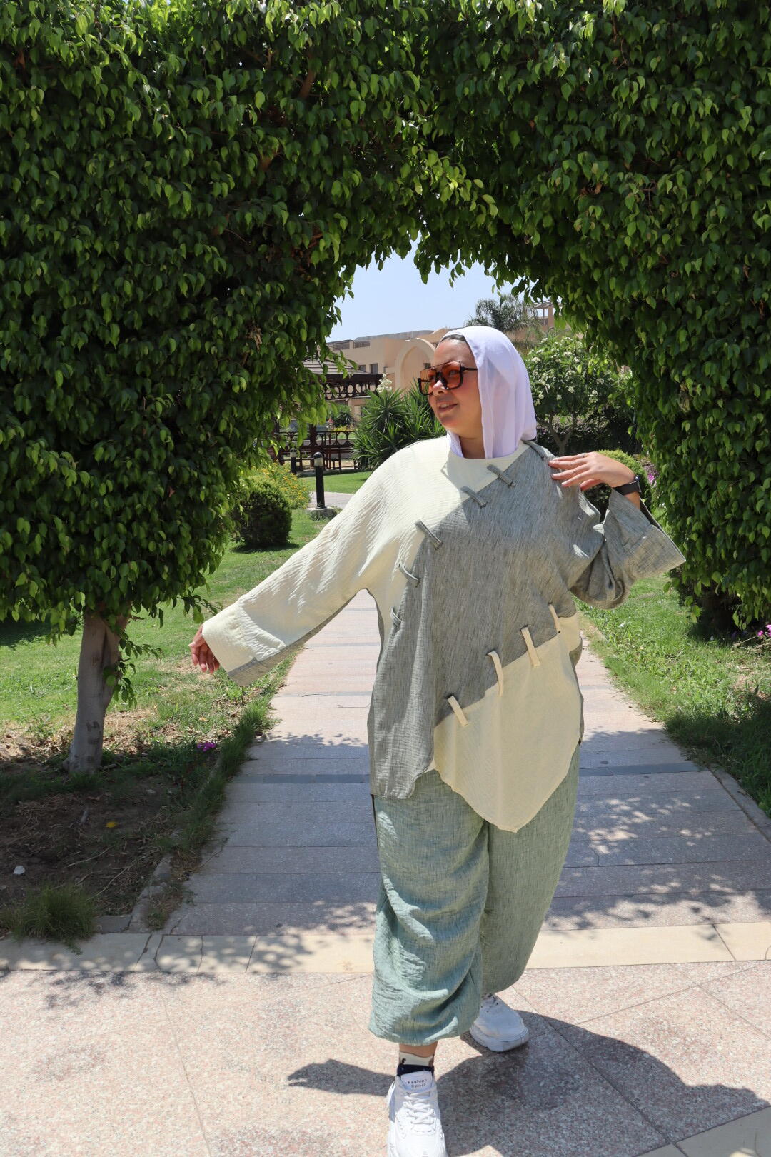 Crafted in breathable linen with modern asymmetric details — perfect for sunny days and casual elegance.