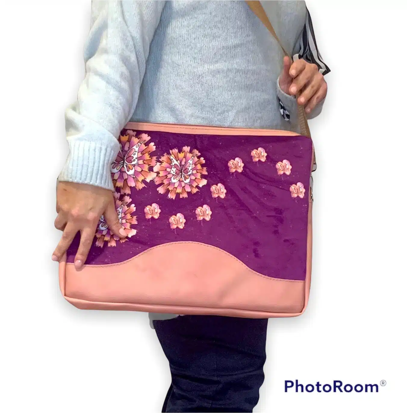 Velvet fabric with a leather touch laptop bag