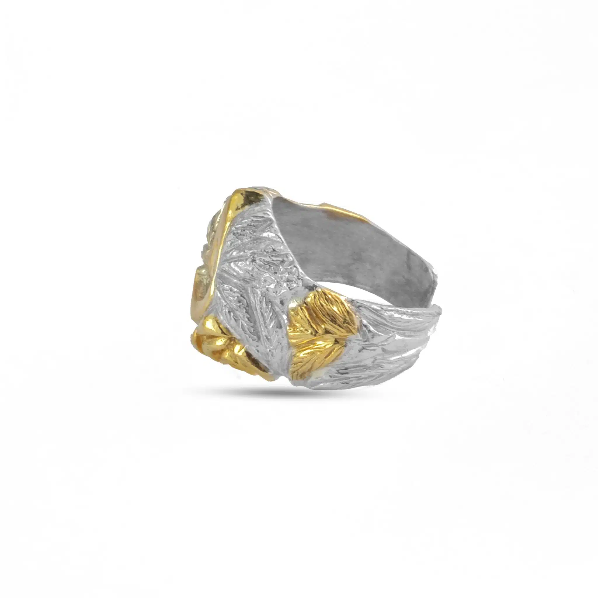 خاتم شغل يدوي ، حفر يدوي ، فضة استرليني عيار ٩٢٥ ، مطلي ذهب و بلاتين