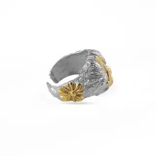 خاتم شغل يدوي ، حفر يدوي ، فضة استرليني عيار ٩٢٥ ، مطلي ذهب و بلاتين