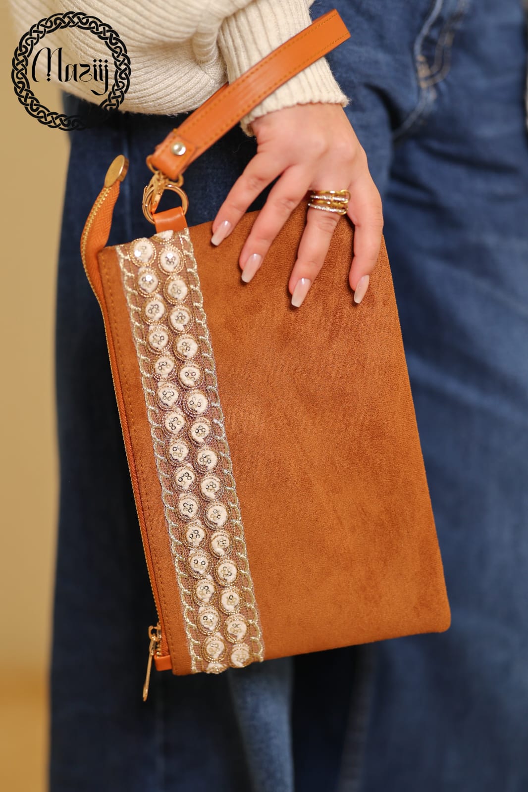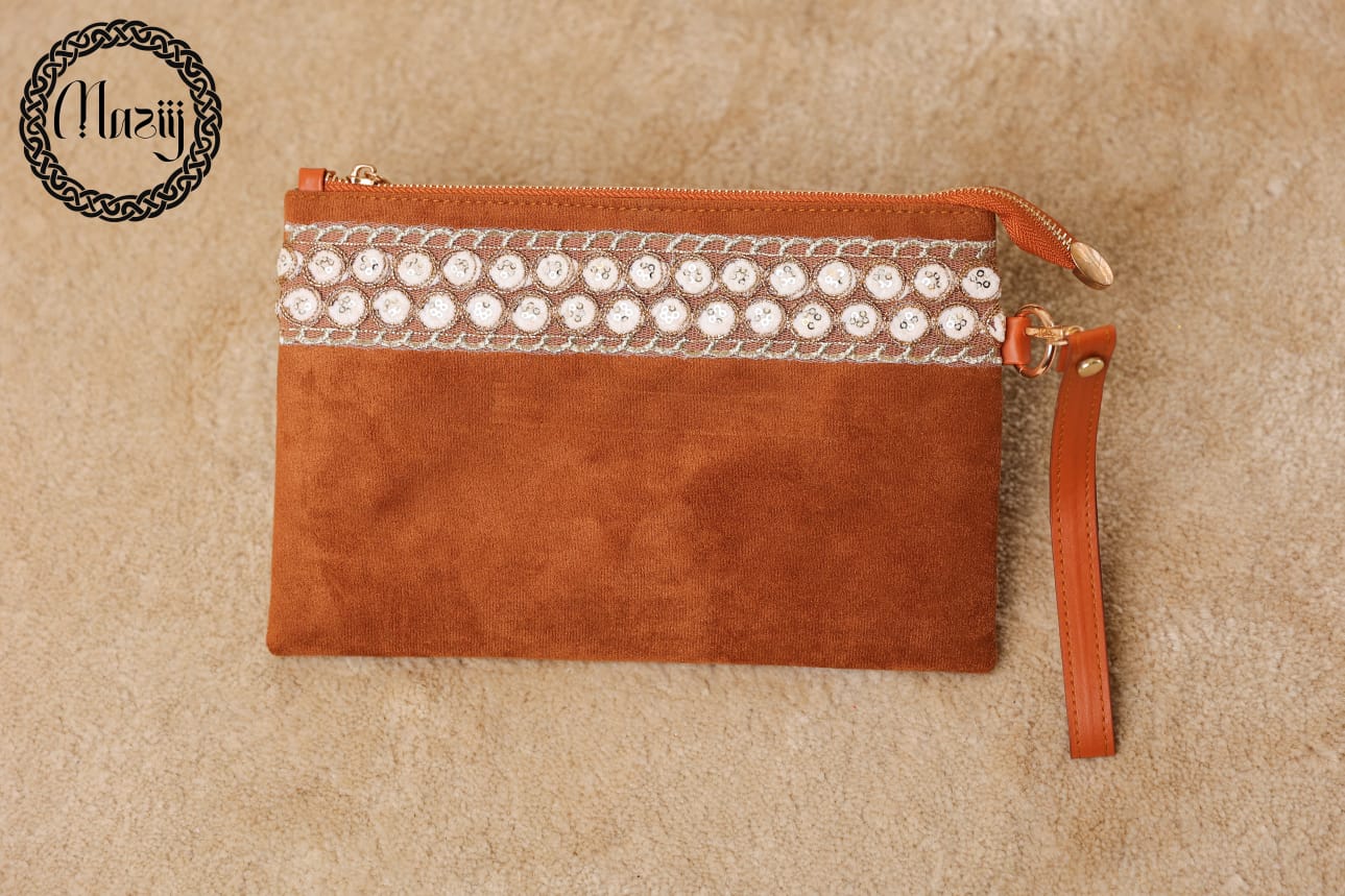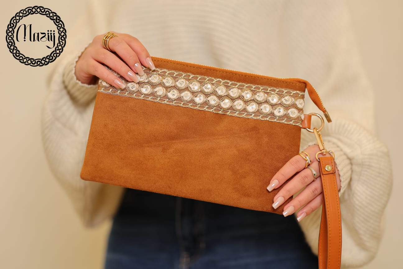 Camel suede clutch