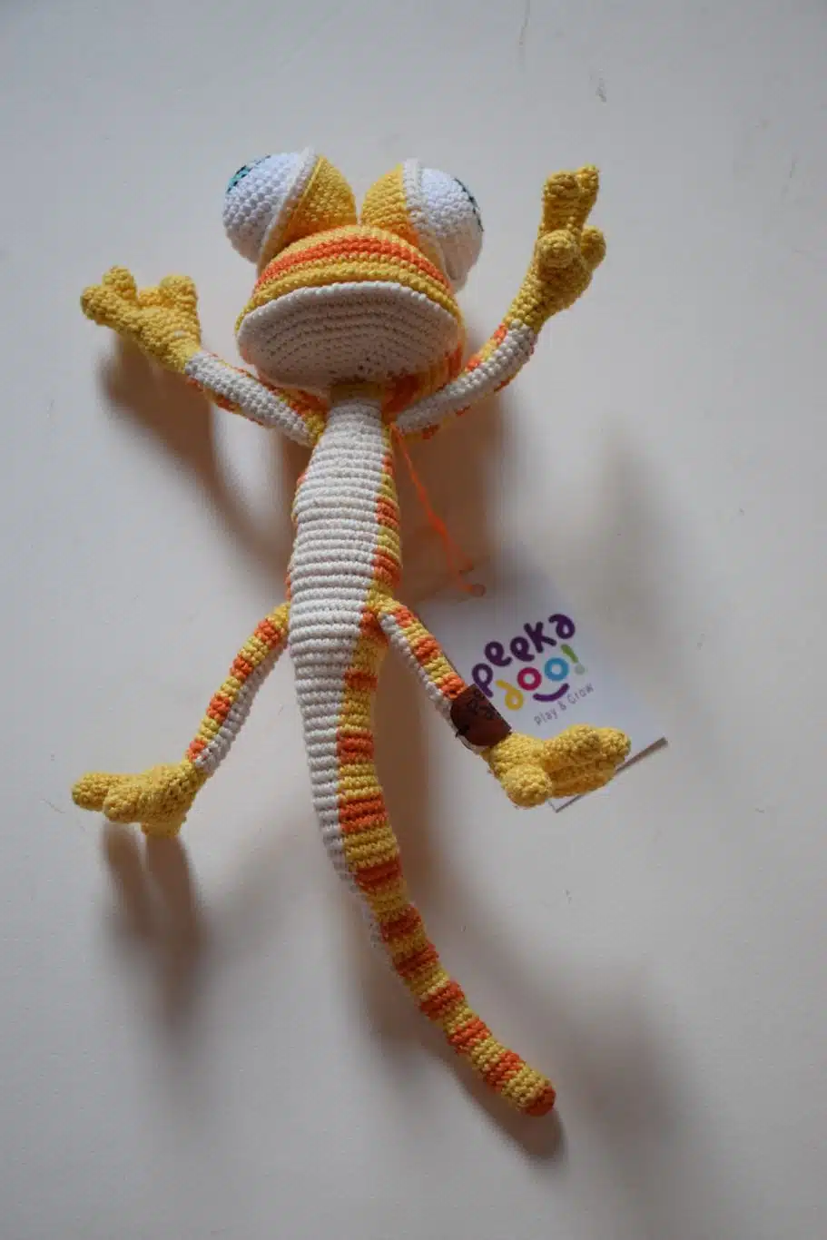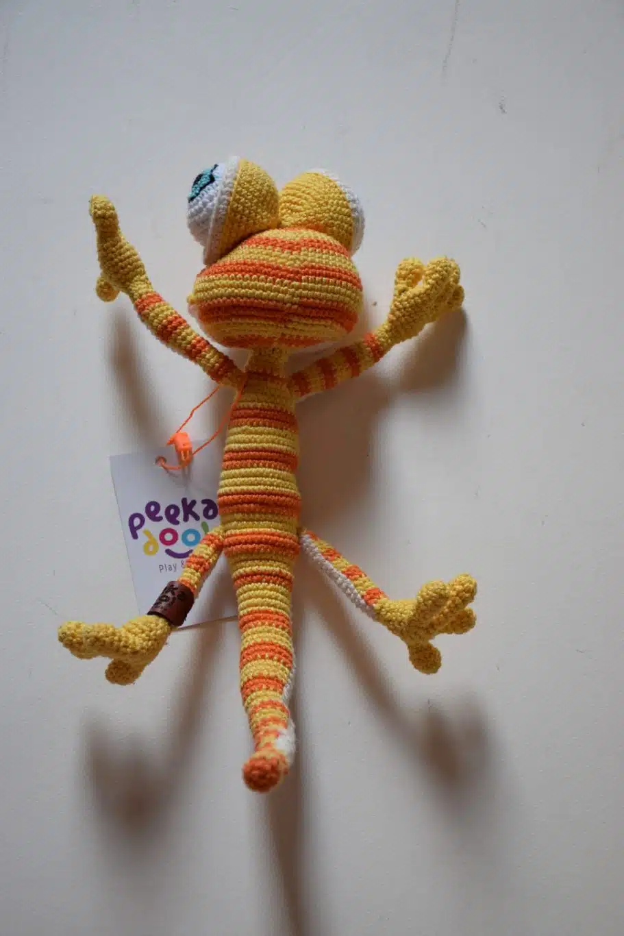 Let your little one explores colors and textures with Cammy the Chameleon, a soft handmade crochet toy designed for sensory stimulation and safe play.
