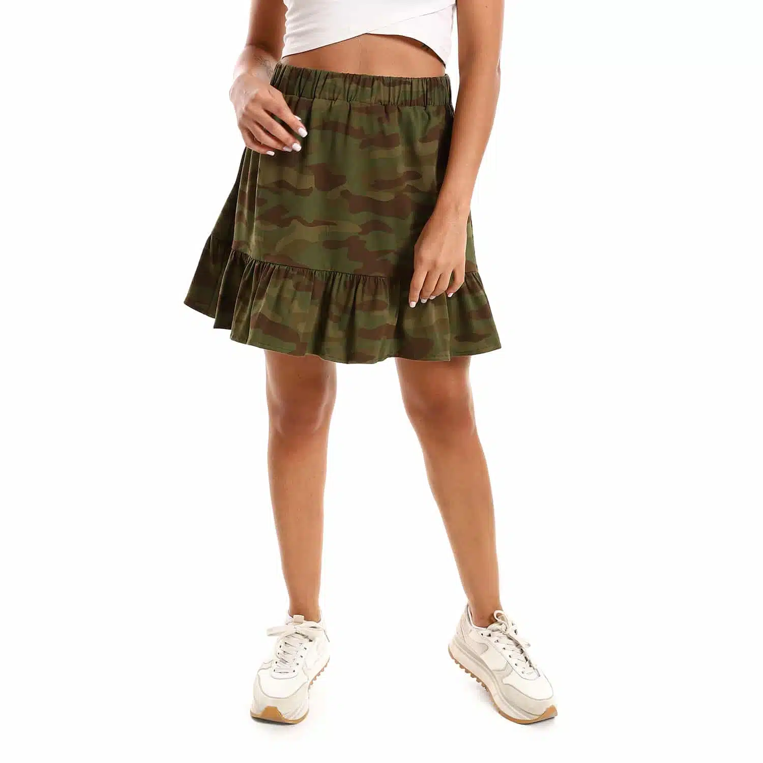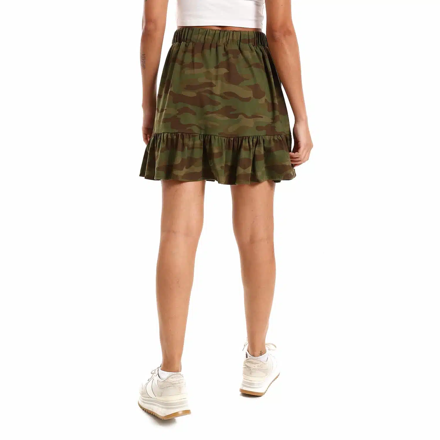- Camouflage mini ruffled skirt
