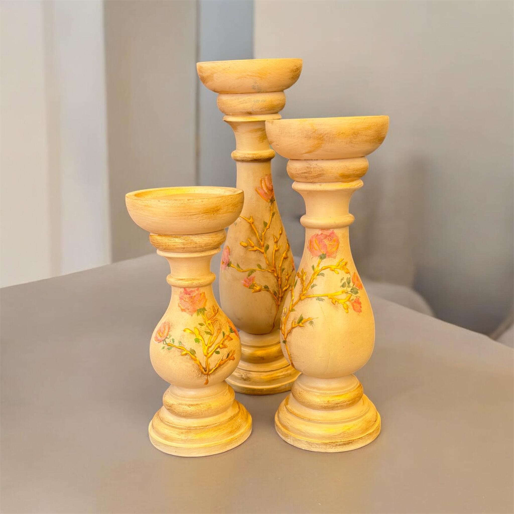 Wooden candle holders with texture golden relief