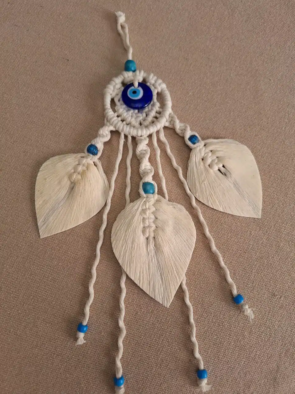 Materials: yarn, gold hoop, wood beads